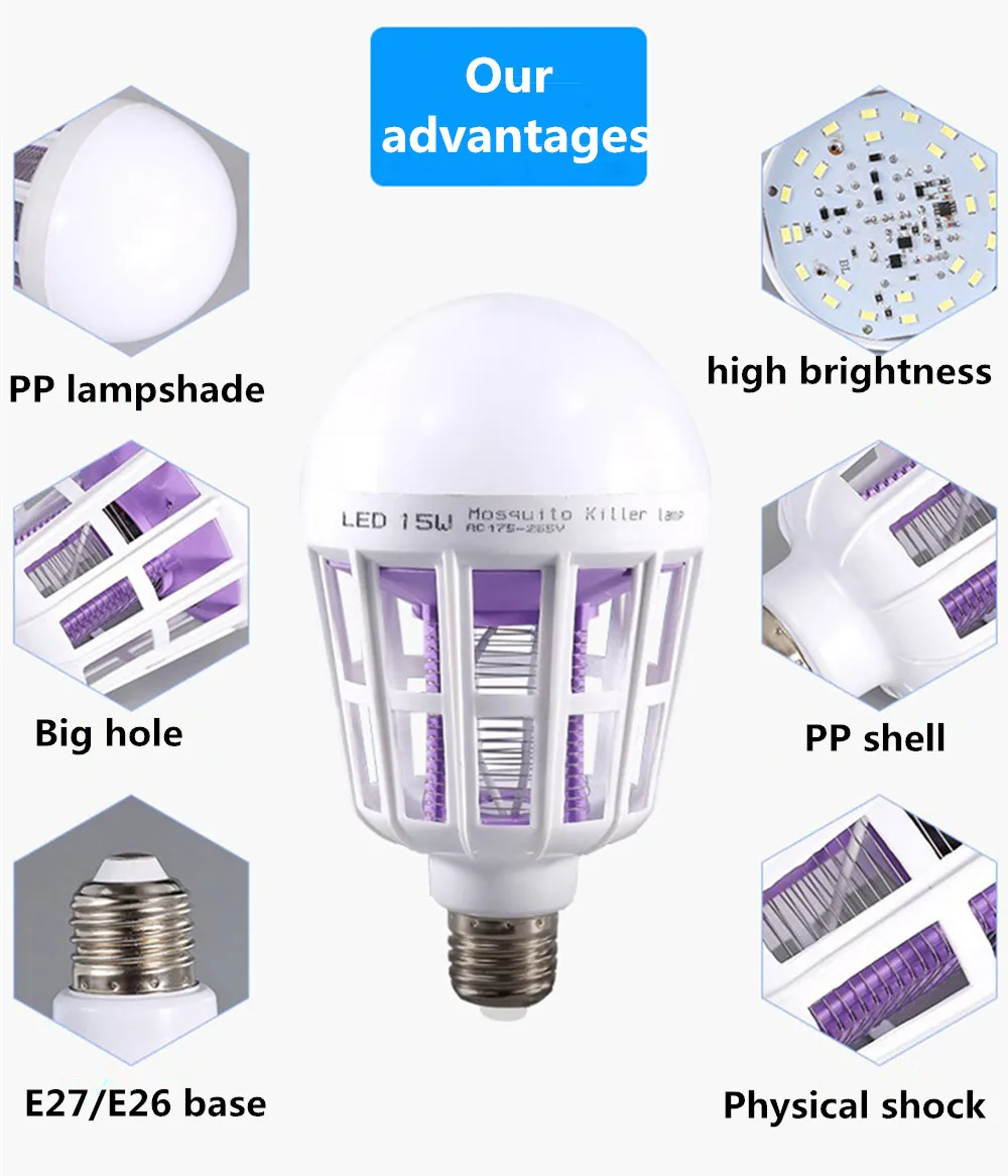 9W/15W 220 V Led Mosquito Killer Izzó E27 Otthoni Világítás Bug Zapper Csapda Lámpa Rovar Anti Szúnyog Repelle Könnyű Kert