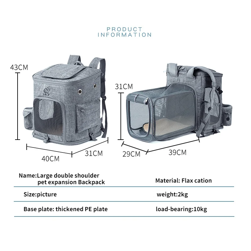 A Kedvtelésből Tartott Állatok Számára Lélegző, Összecsukható Hátizsák Nagy Dupla Vállak Tágulási Hátizsák Terhelése 10 Kg -Os
