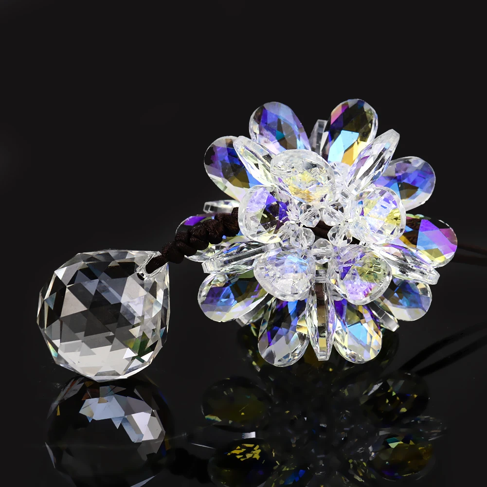 Ab Színű Bazsarózsa Virág Kristály Prizmák Autó Medál Napsütő Szivárványkészítő Automatikus Függő Díszek Visszapillantó Tükör Dekoráció