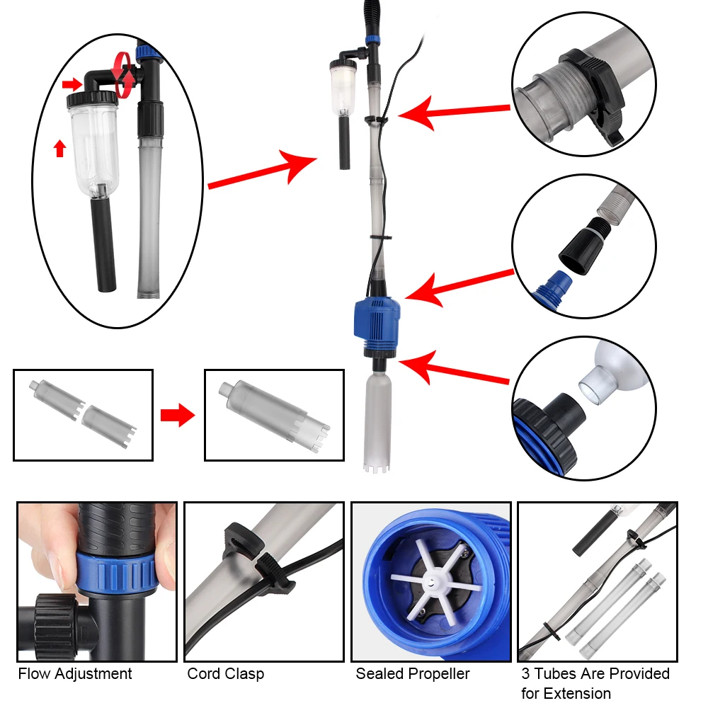 Akvárium Szifon Által Működtetett Tisztábban Elektromos Szifon Szűrő Vákuum Kavicsos Vízváltó Halak Homokos Alátét Usa Dugó