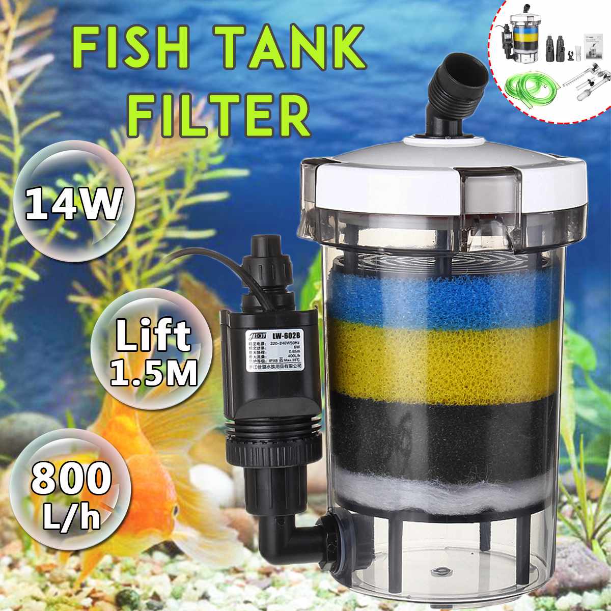 Akváriumszűrő Ultra-Csendes Külső Vödör 220-240V Ew-604 B Akváriumszivacs Tartozék