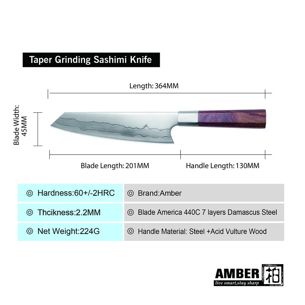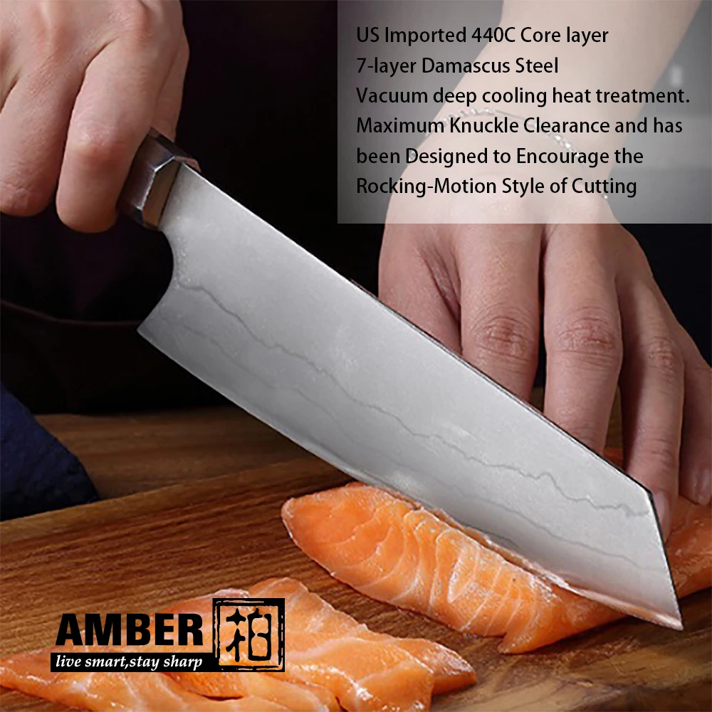 Amber Knife 8 ” Séf Kés 440C Japán Rozsdamentes Acél Professzionális Szakács Kései Éles Penge Főző Eszköz