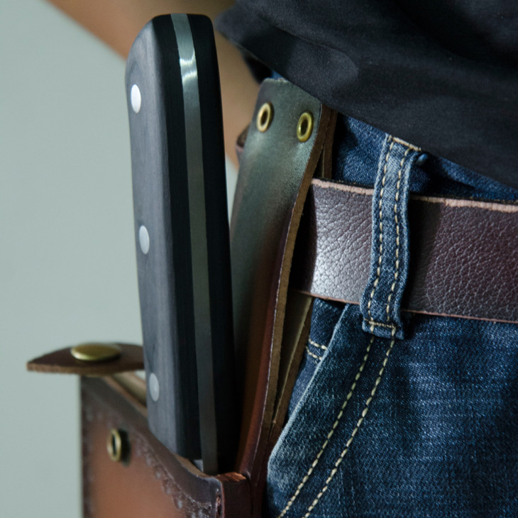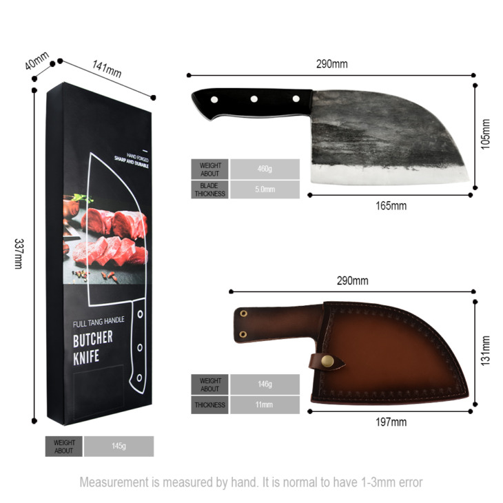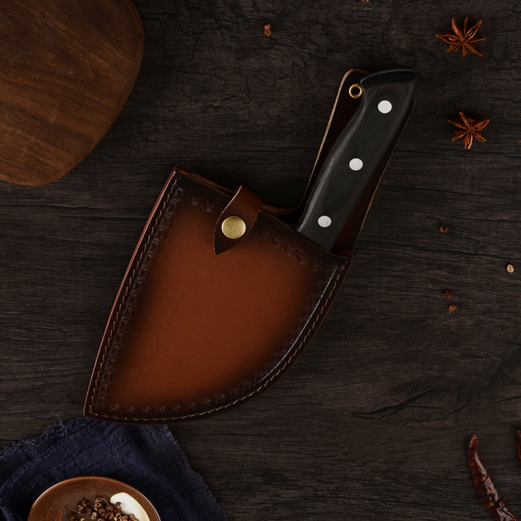 Amerikai Kézbesítés Teljes Tang 7 Hüvelykes Hentes Konyhai Késhüvely Bőr Tok Ajándékkés Rozsdamentes Acél Széles Penge Fa Fogantyú Barkácsolás