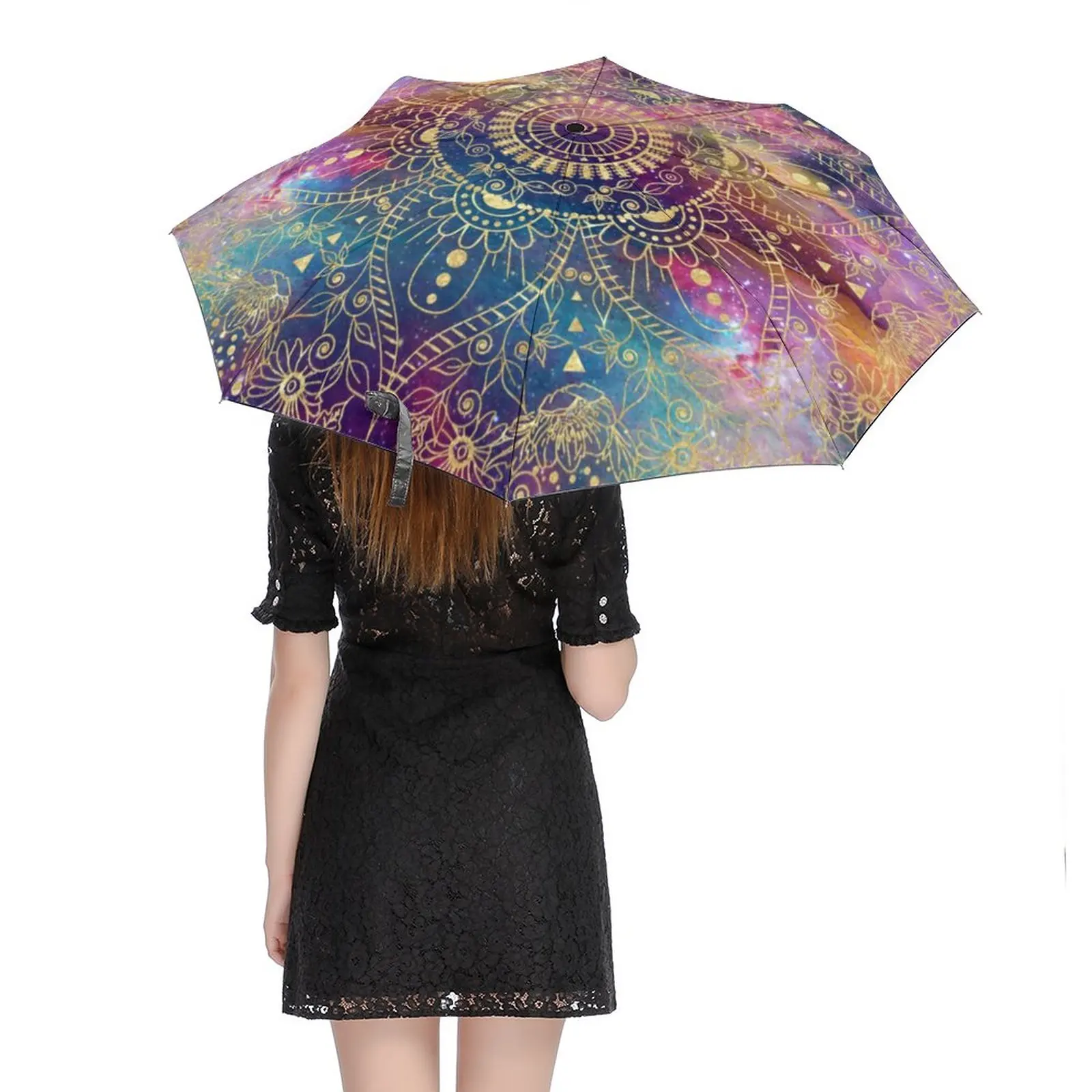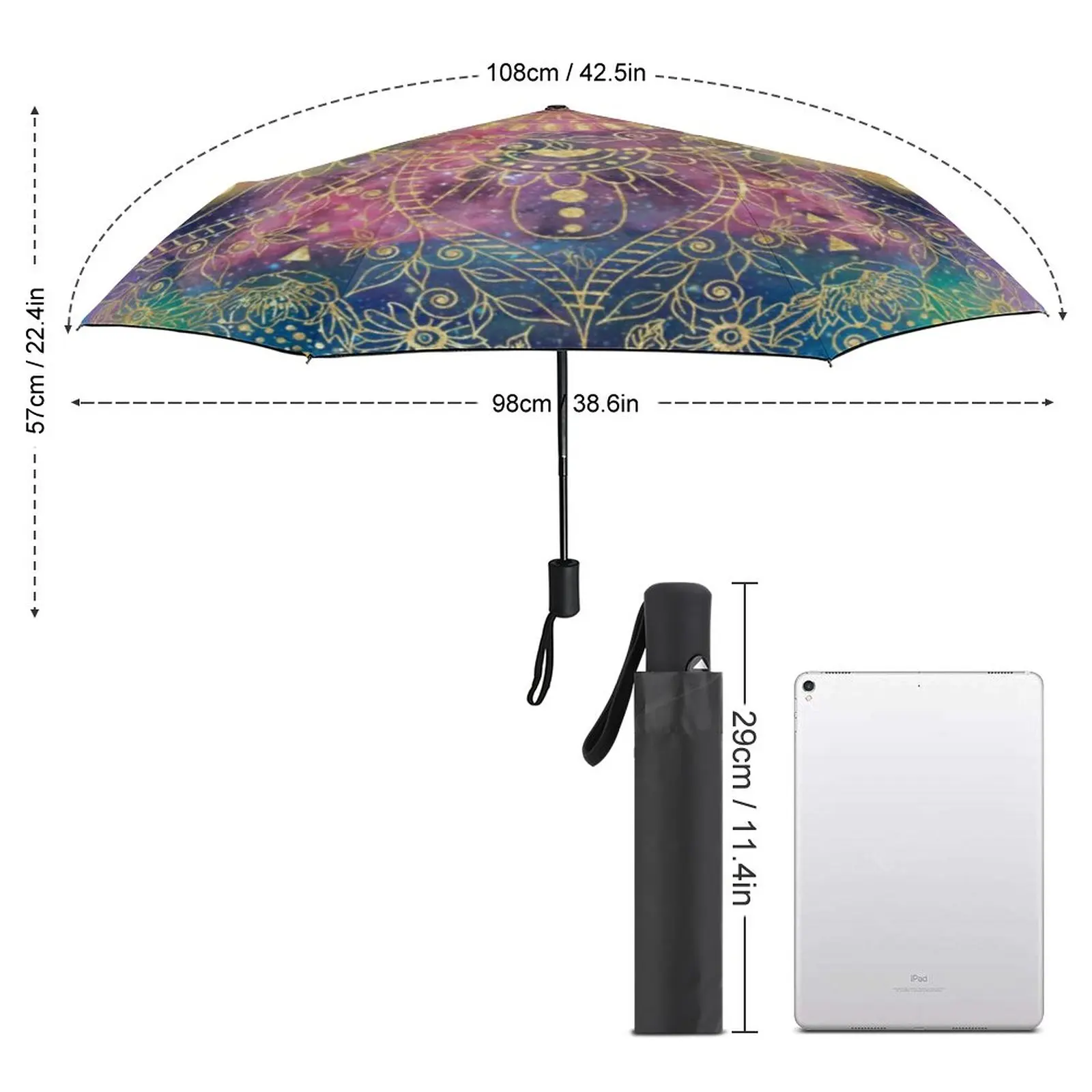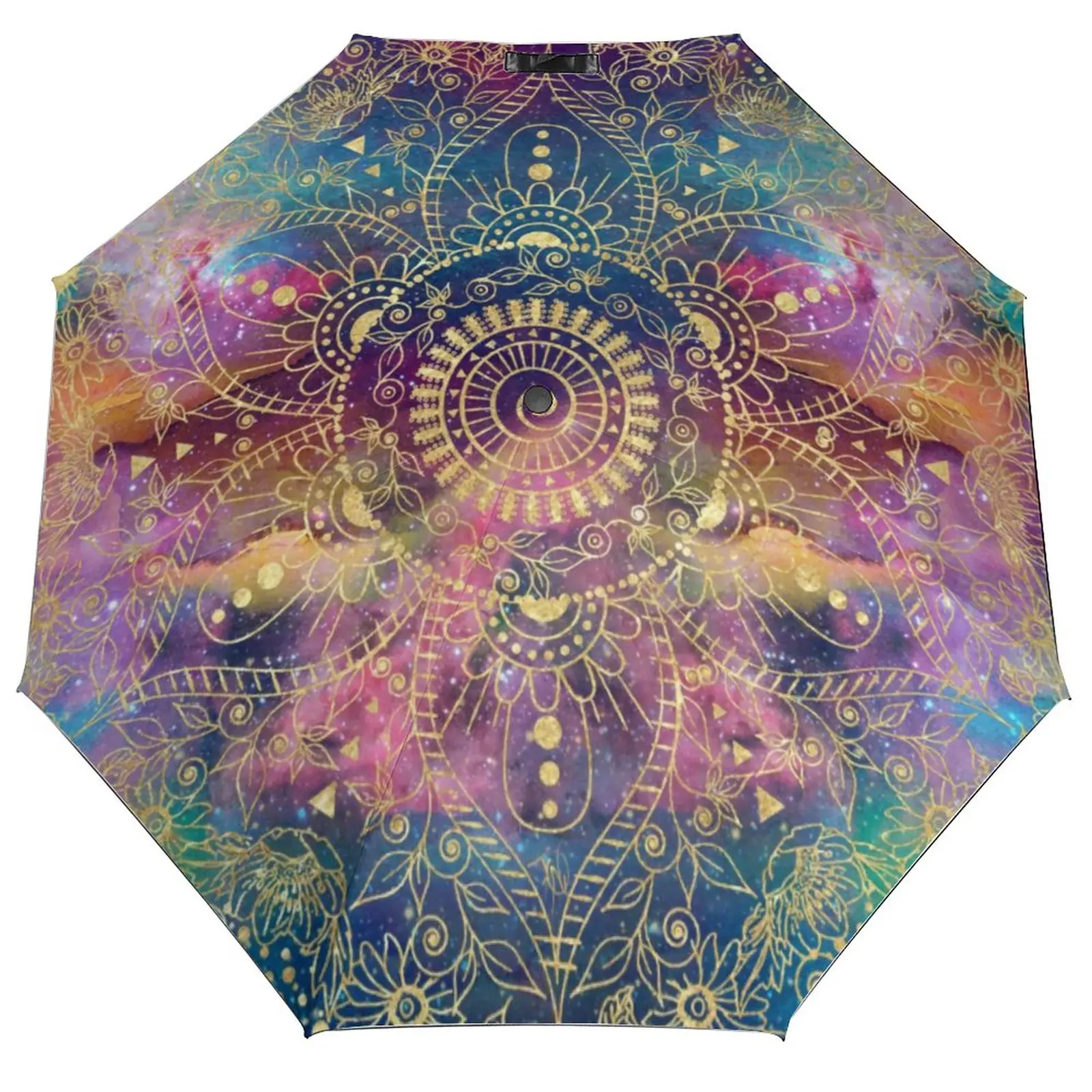 Arany Mandala Nyomtatás 3 Hajtogatott Autós Esernyő Szüreti Virág Fekete Kabát Uv Védelem Ligthsúlyos Esernyők Férfi Nők Számára