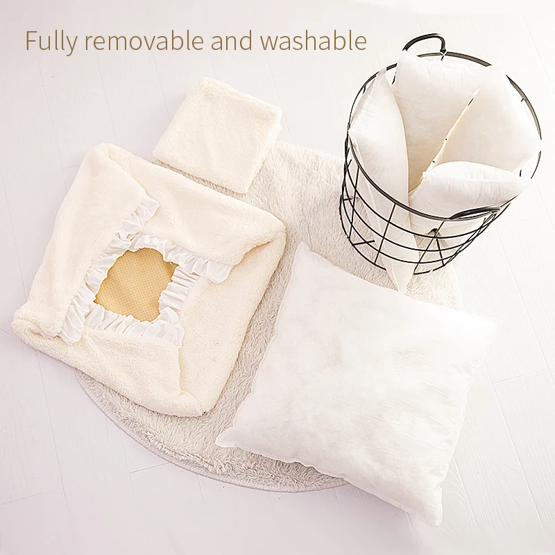 Aranyos Hercegnő Kutyaágy, Puha Lélegző Csipke Macska Kanapé Kiskutya Párnával, Csúszás Nélküli Alsó, Teljes Eltávolítható És Mosható