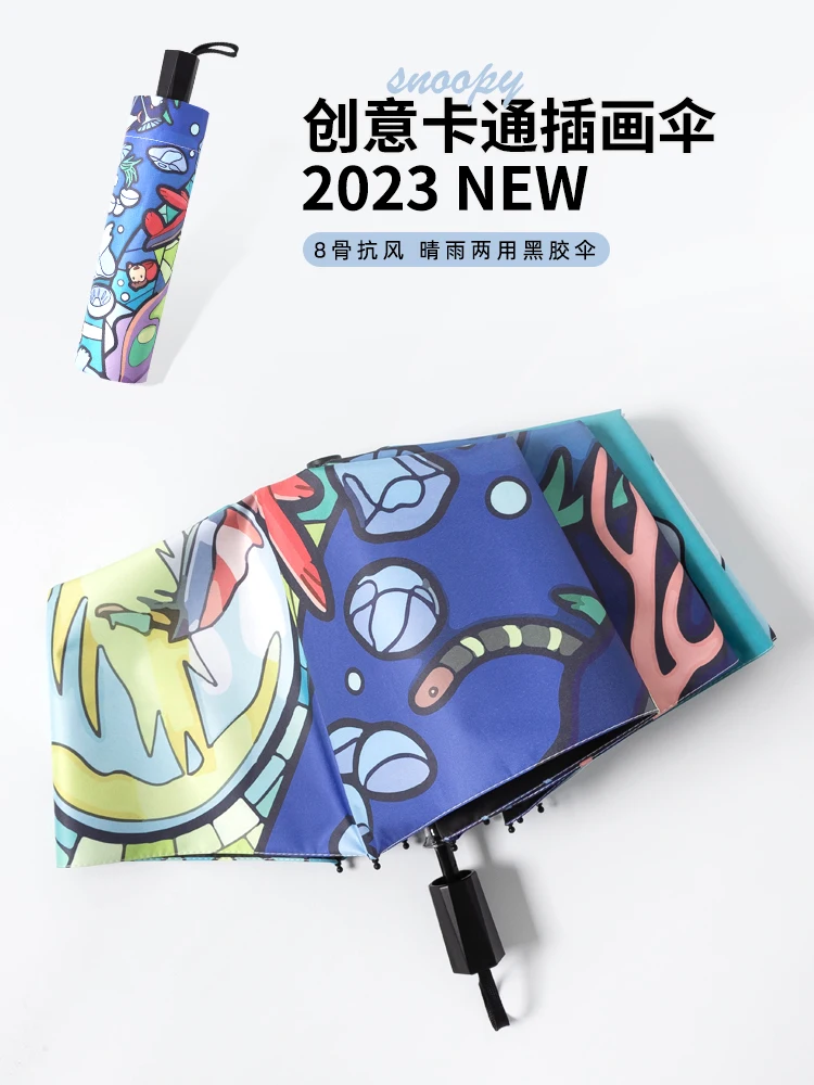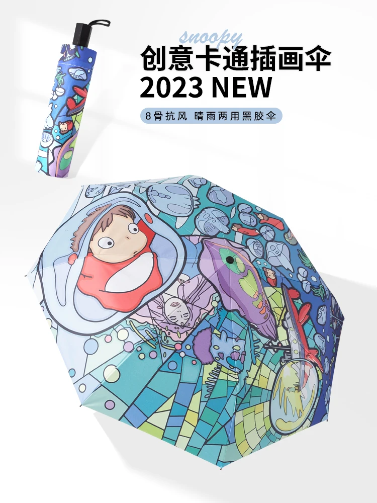 Aranyos Ponyo A Szikla Aranyhal Esernyőjén, Háromszoros Esernyő, Karikatúra Szélálló, Összecsukható Nap Eső Esernyő Cosplay Csepphajó