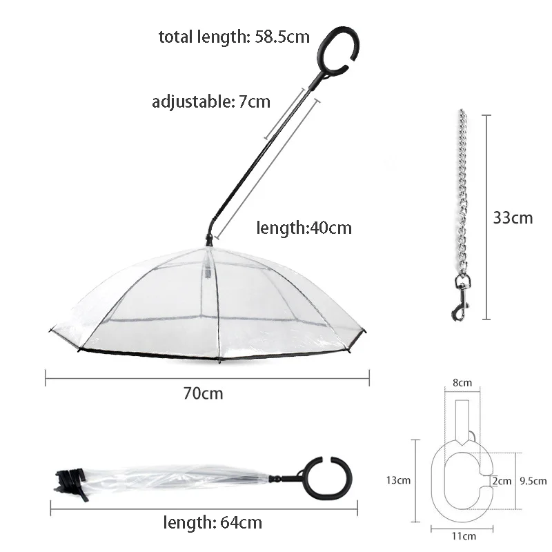 Átlátszó Esernyők A Háziállatokhoz Automatikusan Esernyő Lánc Póráz Kutya Esőkabát Esős Szabadtéri Kiegészítő Szél Ellen