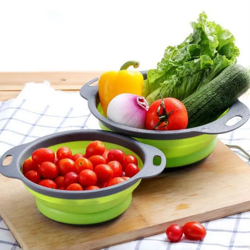 Behúzható Szilikon Mosogatógép Lefolyó Kosár Négy Szín Választható Kerek Méretű Összecsukható Szilikon Mosó Kosár Gyümölcskosár