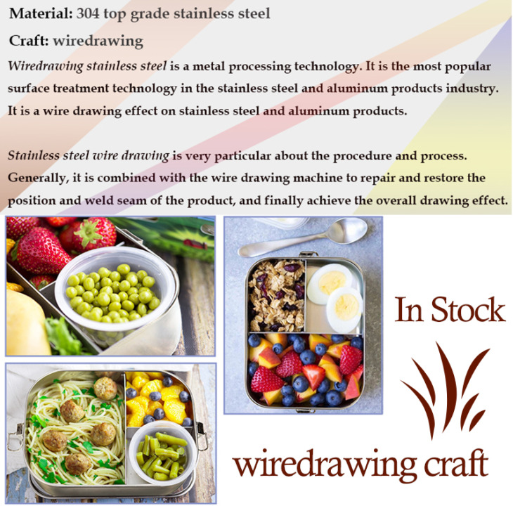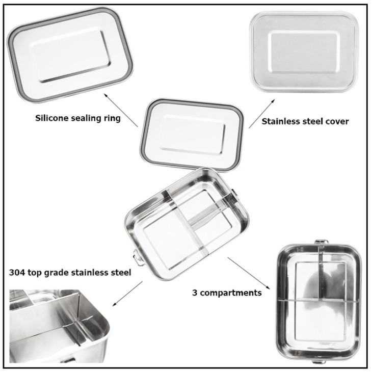 Bento Ebéddoboz 304 Fokozatú Rozsdamentes Acél Élelmiszer -Tartály Szilikon Tömítő Gyűrű Rizs Edény Tároló Kiegészítők 3 Rekeszes