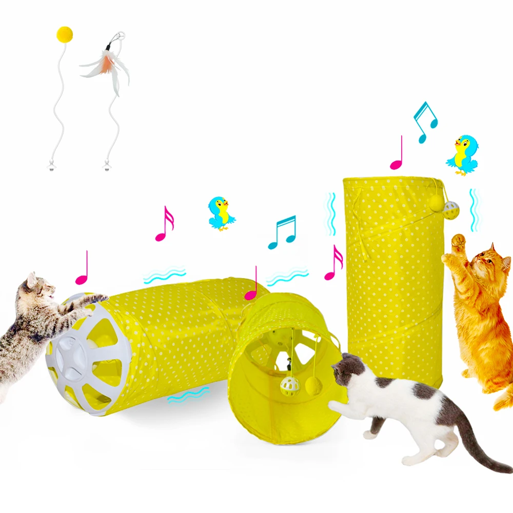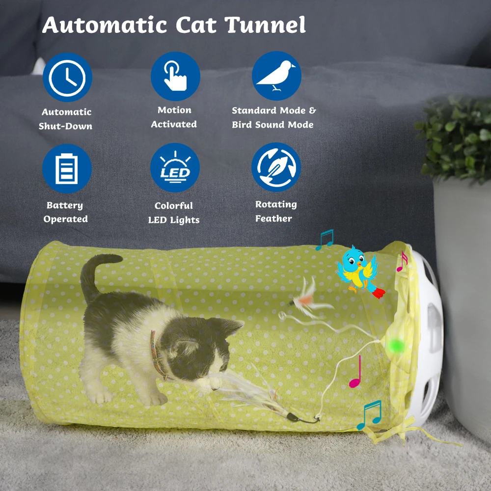 Bentopal-Interaktív Kedvtelésből Tartott Játék Automatikus Macska Alagút Mozgással Aktív Forgó Tollas Játékok És Madár Hang Led-Es Lámpák Játék