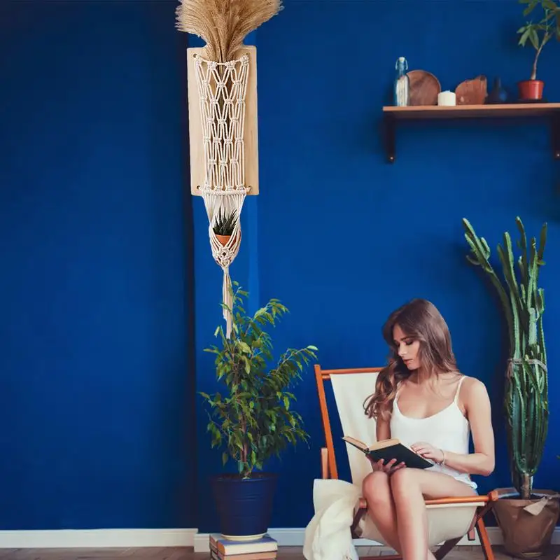 Boho Flowers Fali Függők Gobelin Virág Kosár Növényi Fogas Északi Stílusú Bohém Otthoni Dekoráció Rusztikus Virágtárolás