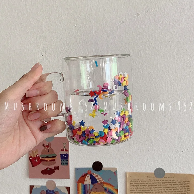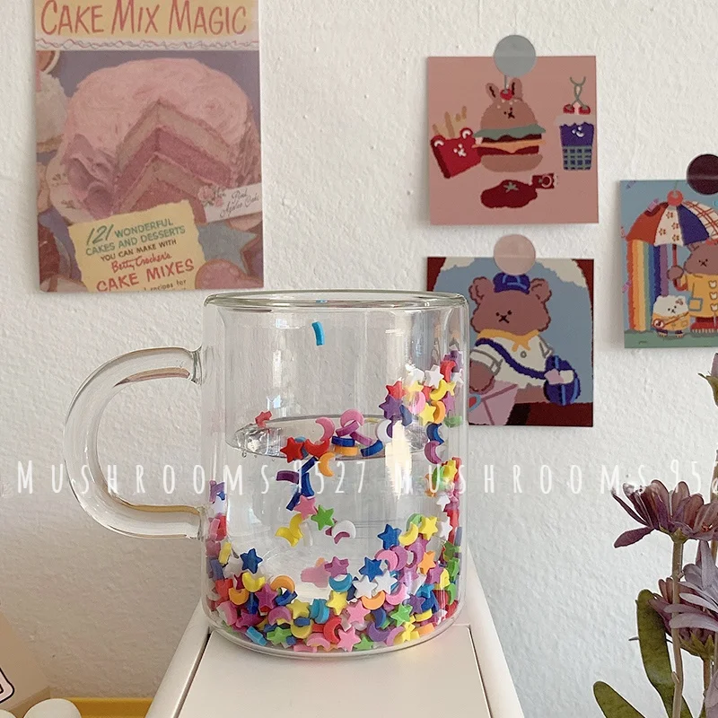 [Boldogság Eladás] Kreatív Gyermekek Szórakoztató Kawaii Színes Csillag Hold Gyors És Átlátszó Dupla Üvegvizes Kupa Lány Szívkupa