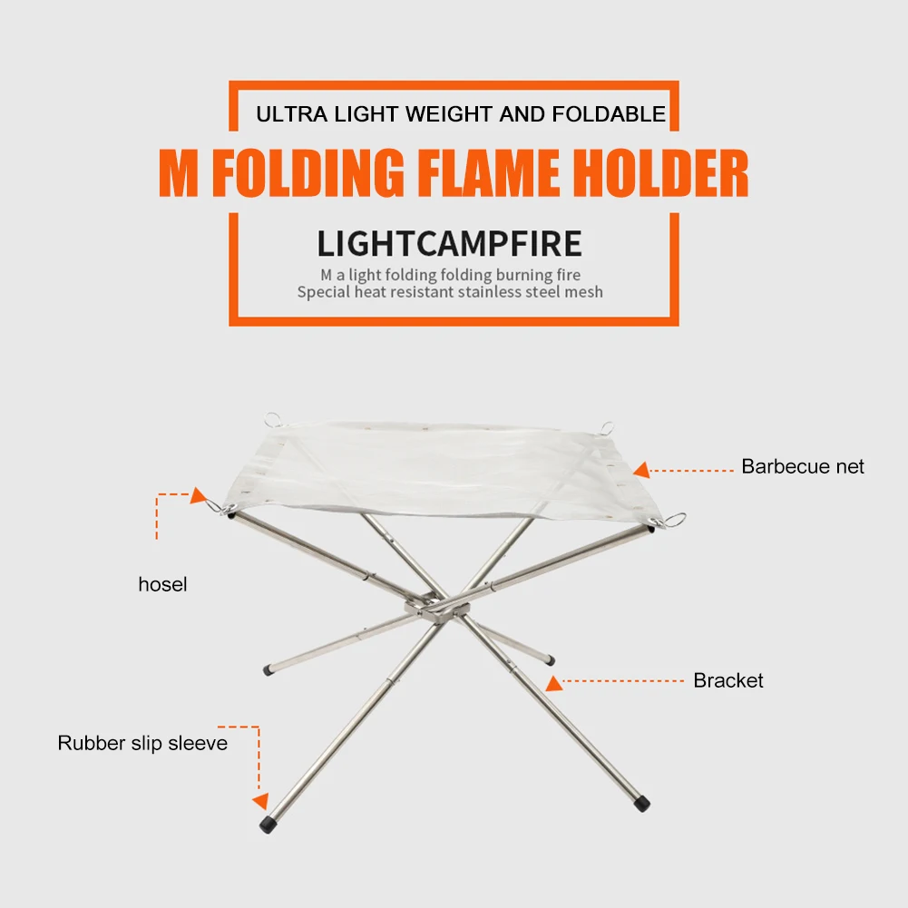 Bonlfire Tábortűz Kemping Fa Tűzhely Állvány Tűzállvány Rozsdamentes Acél Összecsukható Háló Tűz Pit Kültéri Fűtés