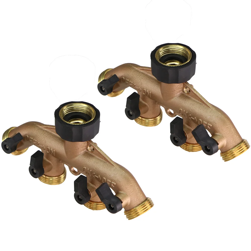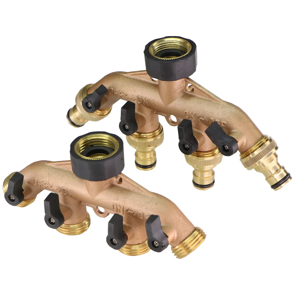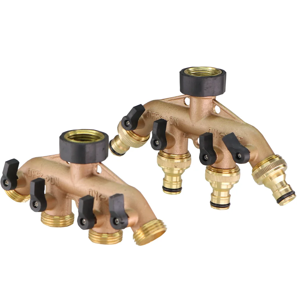 Bsp Npt Sárgaréz 4-Út Szálkert Kerti Tömlő Osztó Nagy Teherbírású Csapcsövek Adapter Kapcsoló Csatlakozó Leállító Öntözés