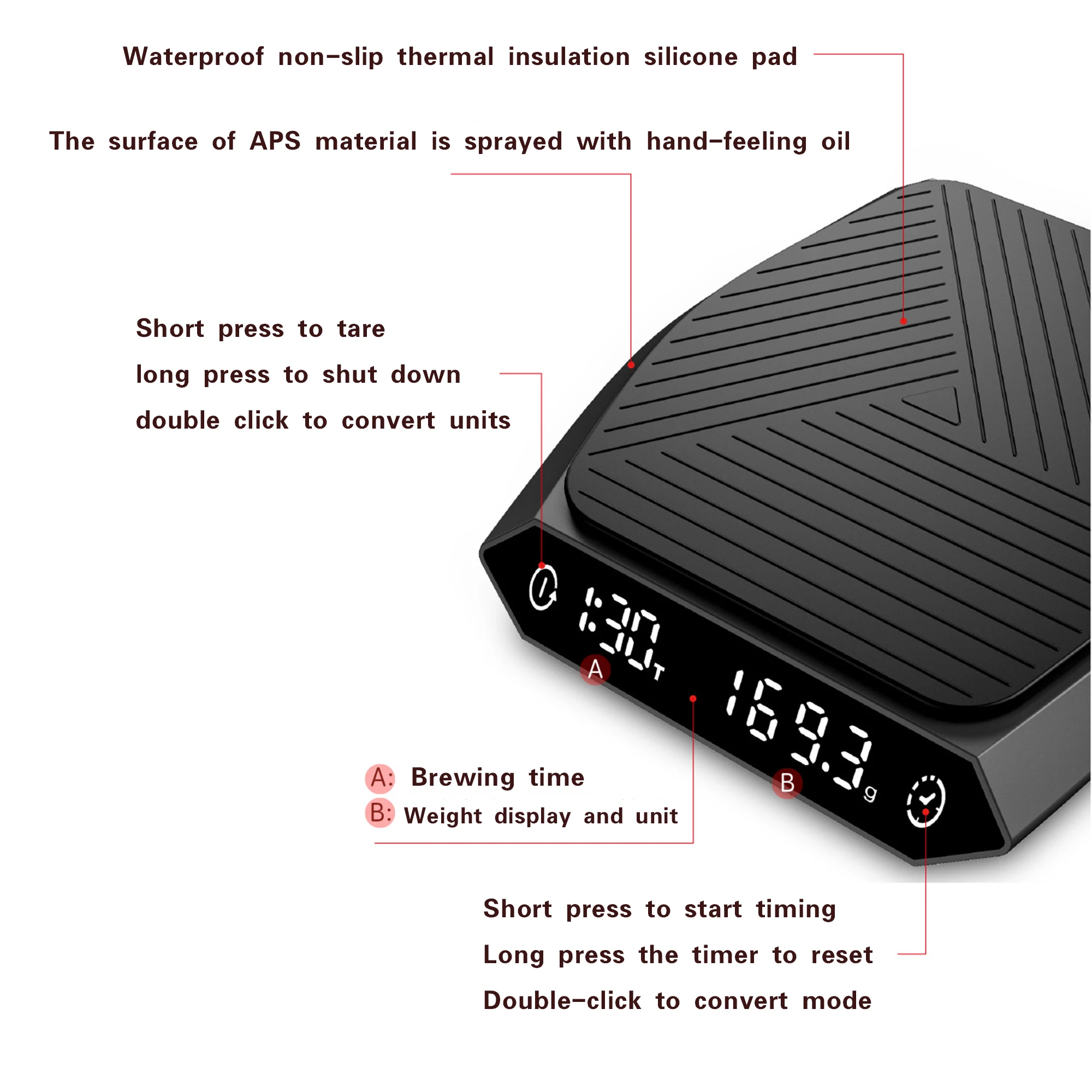 Bulea Kávé Skála Mérlegelje A Digitális Kávét Időzítővel, Eszpresszó Skálával, 0,1 G Precíziós