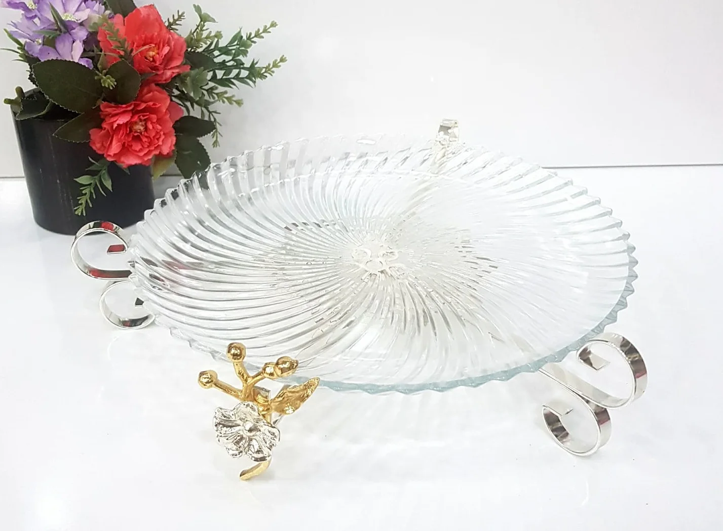 Cake Service Cupcake Állvány Arany Ezüst Színű Konyha Otthoni Dekoratív Virágtervezés Születésnapi Parti Kiegészítők Üvegfém Alap