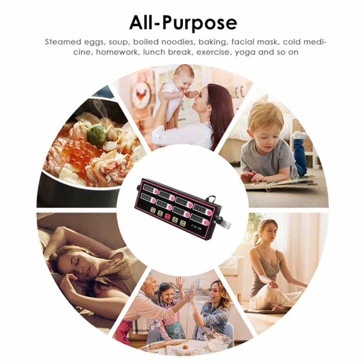 Cal-8B Hordozható Számítás 8 Csatorna Digitális Időzítő Konyha Főzési Időzítés Lcd Kijelző Óra Remegő Emlékeztető Cseppszivárgás