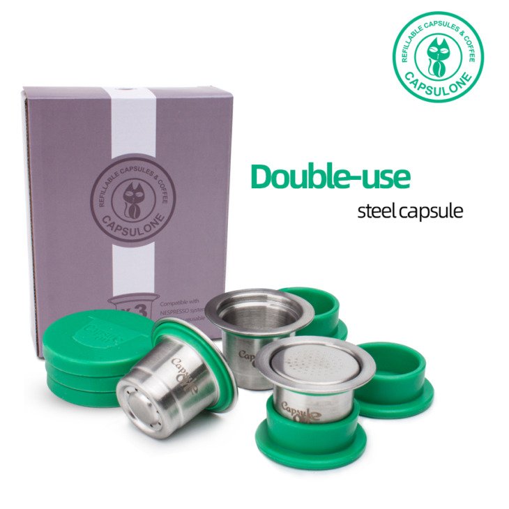 Capsulone Újratölthető Újrafelhasználható Rozsdamentes Acél Kávéfogyasztók, Amelyek Kompatibilisek A Nespresso Gépekkel, 3 Pod 120 Tömítések