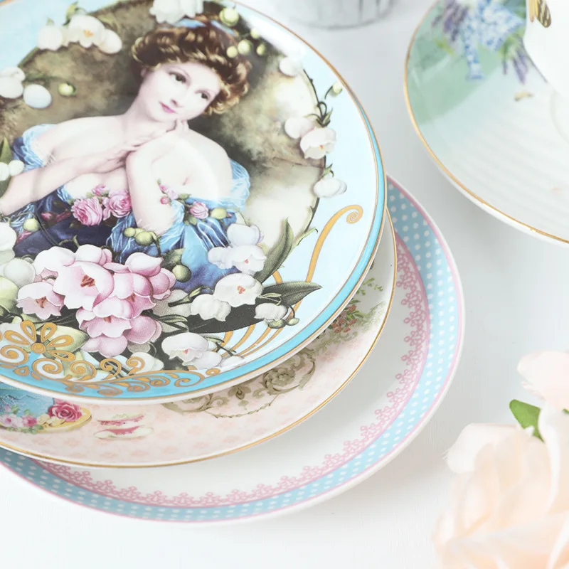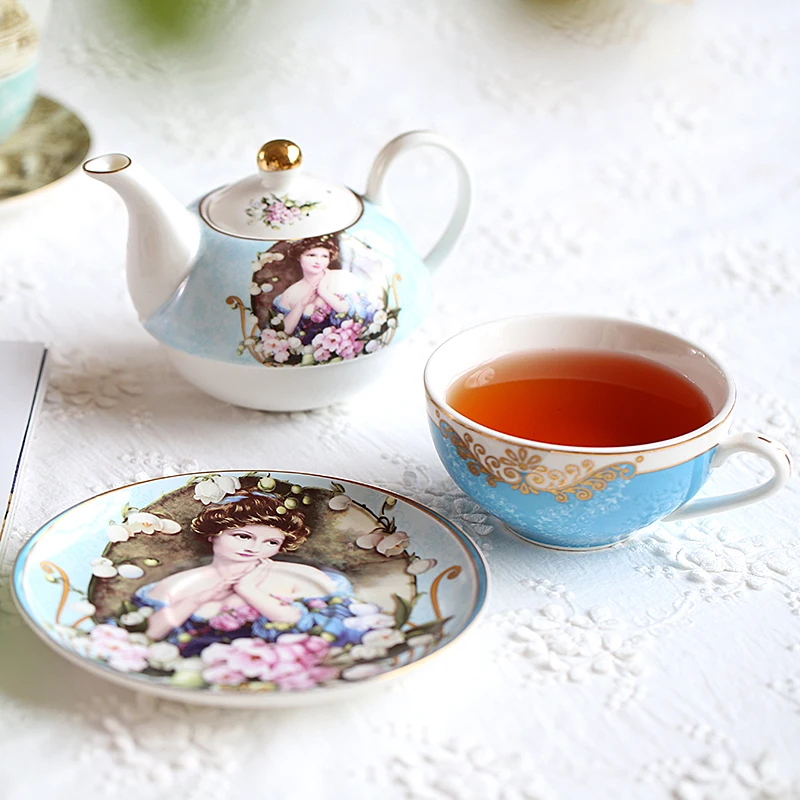 Ceramics Teakészlet Kreatív Délutáni Teás Teáskanna Csészealj Ételkészlet Európa Retro Nyomtatás Porcelán Tea Tál Konyhai Italok