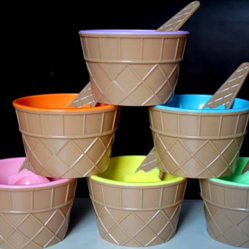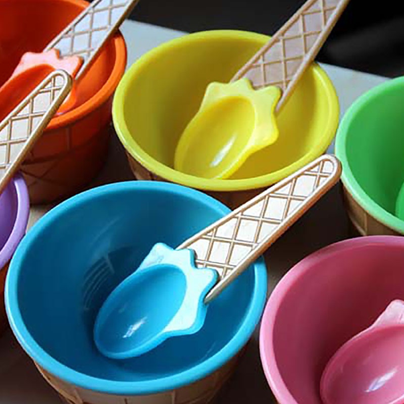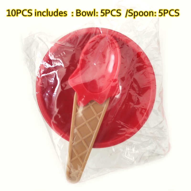Charmeuse Hajpánt Textil Puha 10Db Divat Aranyos Gyerekek Édes Színes Fagylalt Kanál Készlet Tál Fagylaltpohár Desszert Tartó Konténer