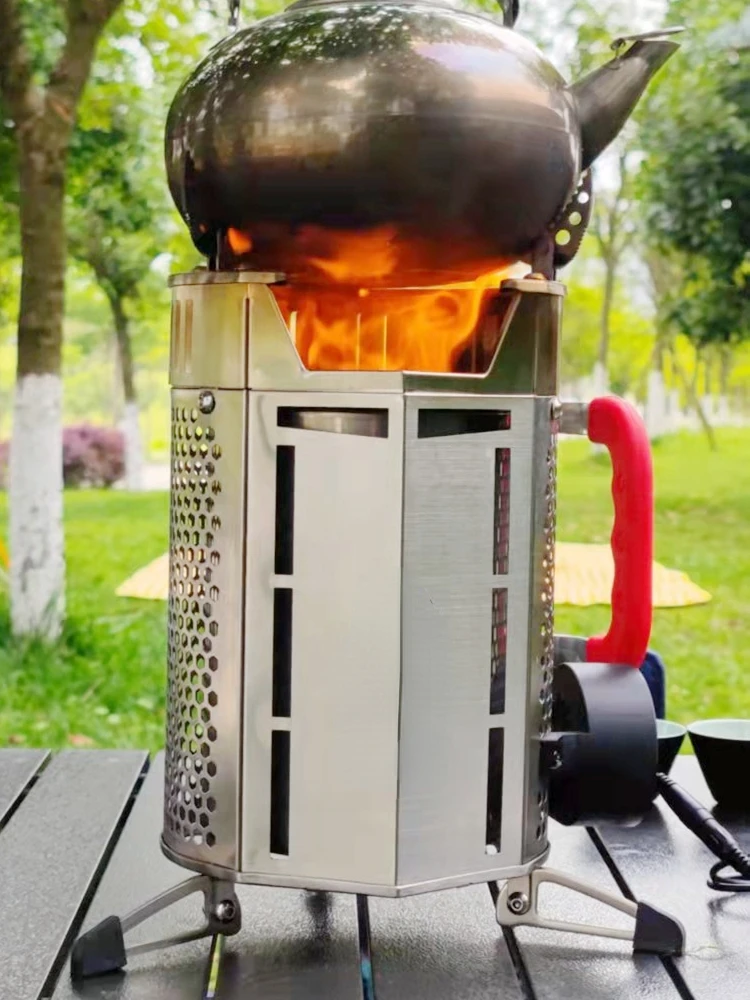 Chimeneák Kemping Fa Tűzhely Hordozható Gáztűzött Égő Kályha Kültéri Piknik Bbq Főzés Hátizsák Kemence