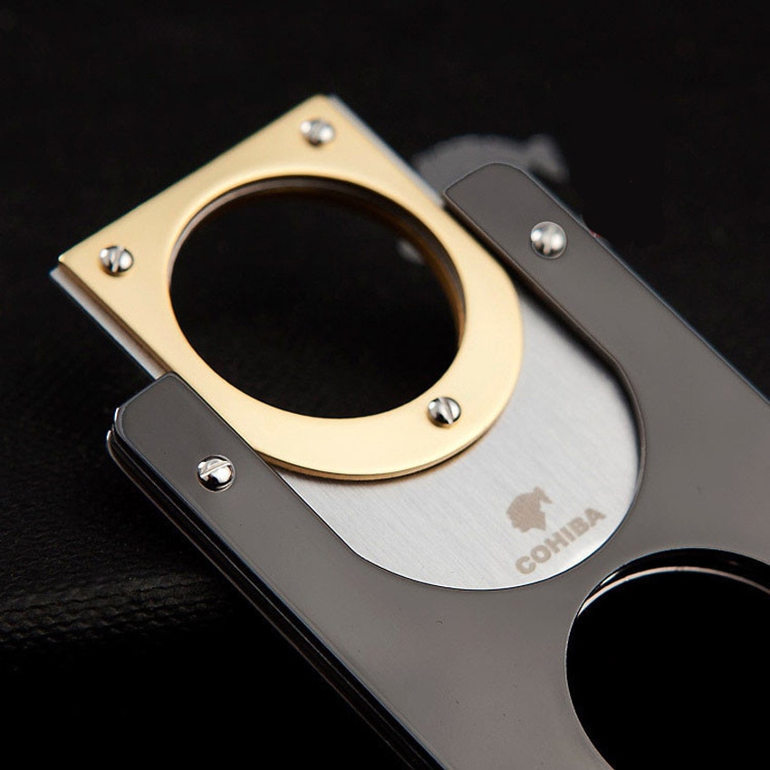 Cohiba Double Pengék Rozsdamentes Aranybevonatú Szivarvágóval Pocket Gadgets Zigarre Cutter Knife Kubai Szivarok Olló 163Gh