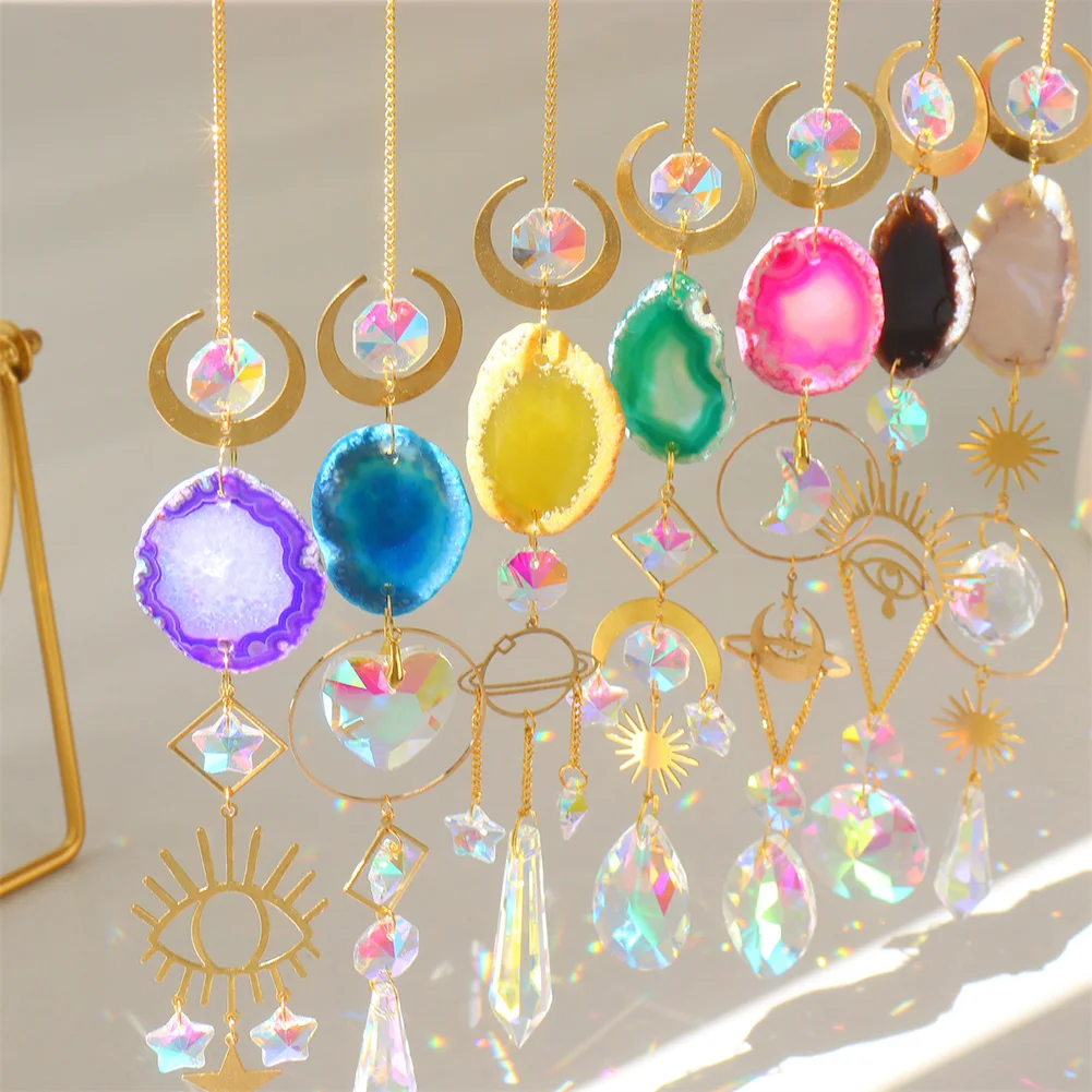 Crystal Dream Catcher Devil Eye Planet Metal Rainbow Dísz Hold Színű Borostyán Pehelykert Díszek Családtag Ajándékok