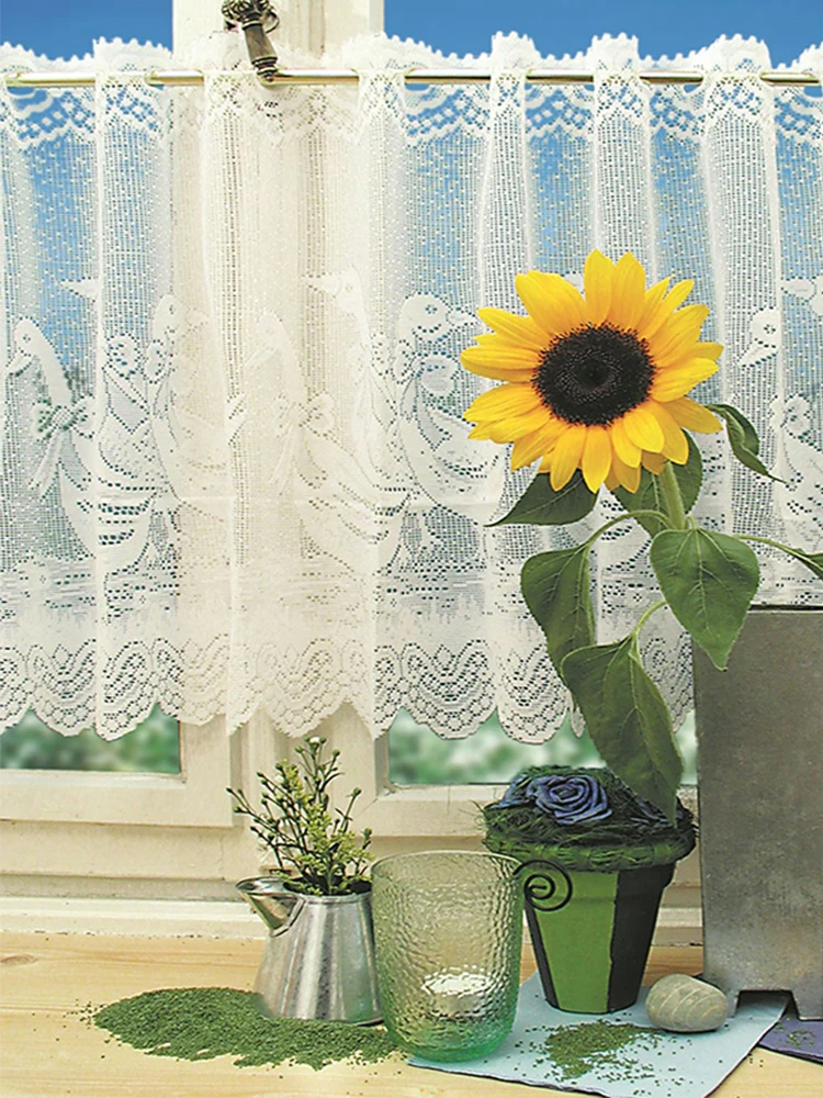 Csipke Kávéfüggöny Jacquard Ablak Függöny Fehér Üreges Rövid Tüllfüggönyök A Konyhaszekrény Ajtóhoz Otthoni Dekoráció