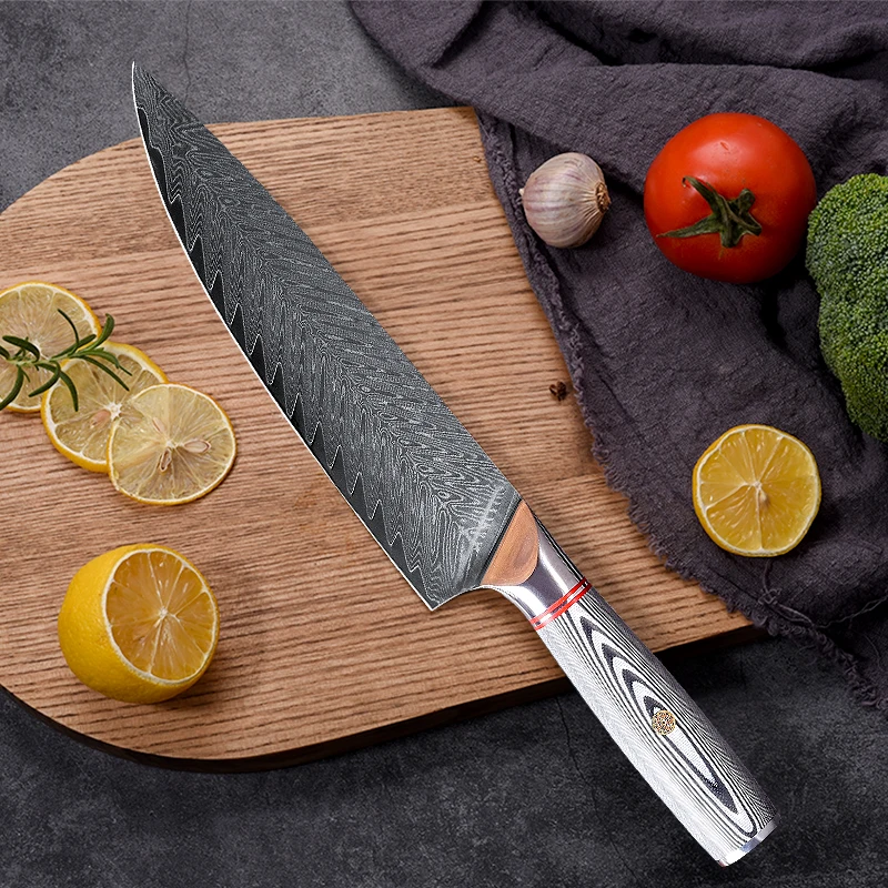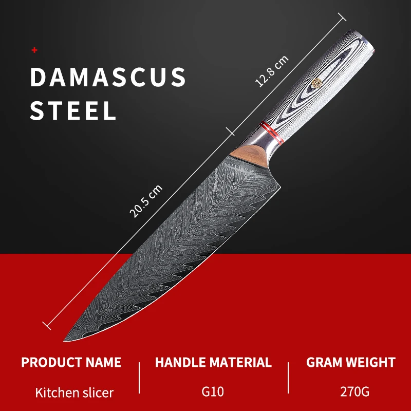 Damascus Acél Séf Kés Japán Vg10 Mag Penge Borotva Éles Konyhai Kések Hús Cleaver A Séf Kés G10 Fogantyú Ajándékdoboz