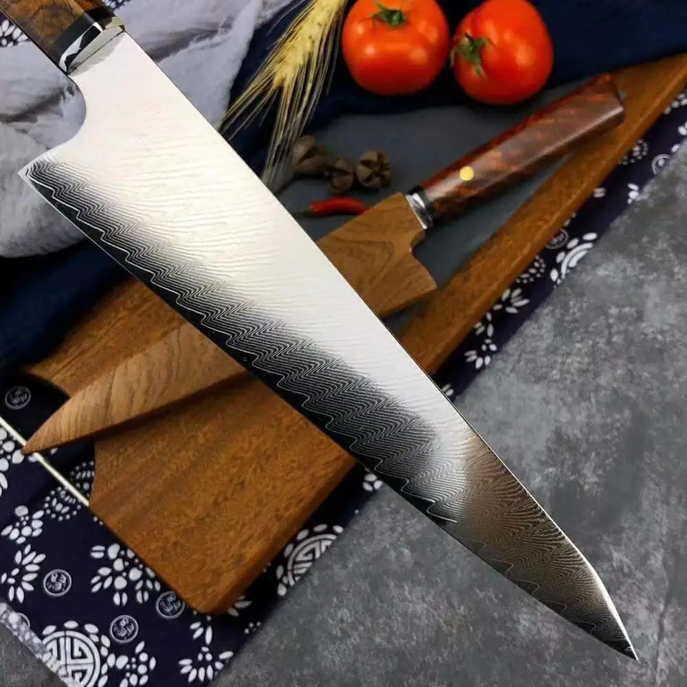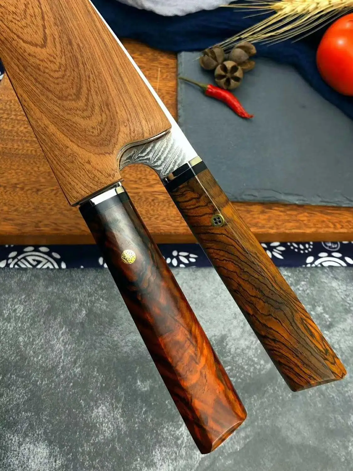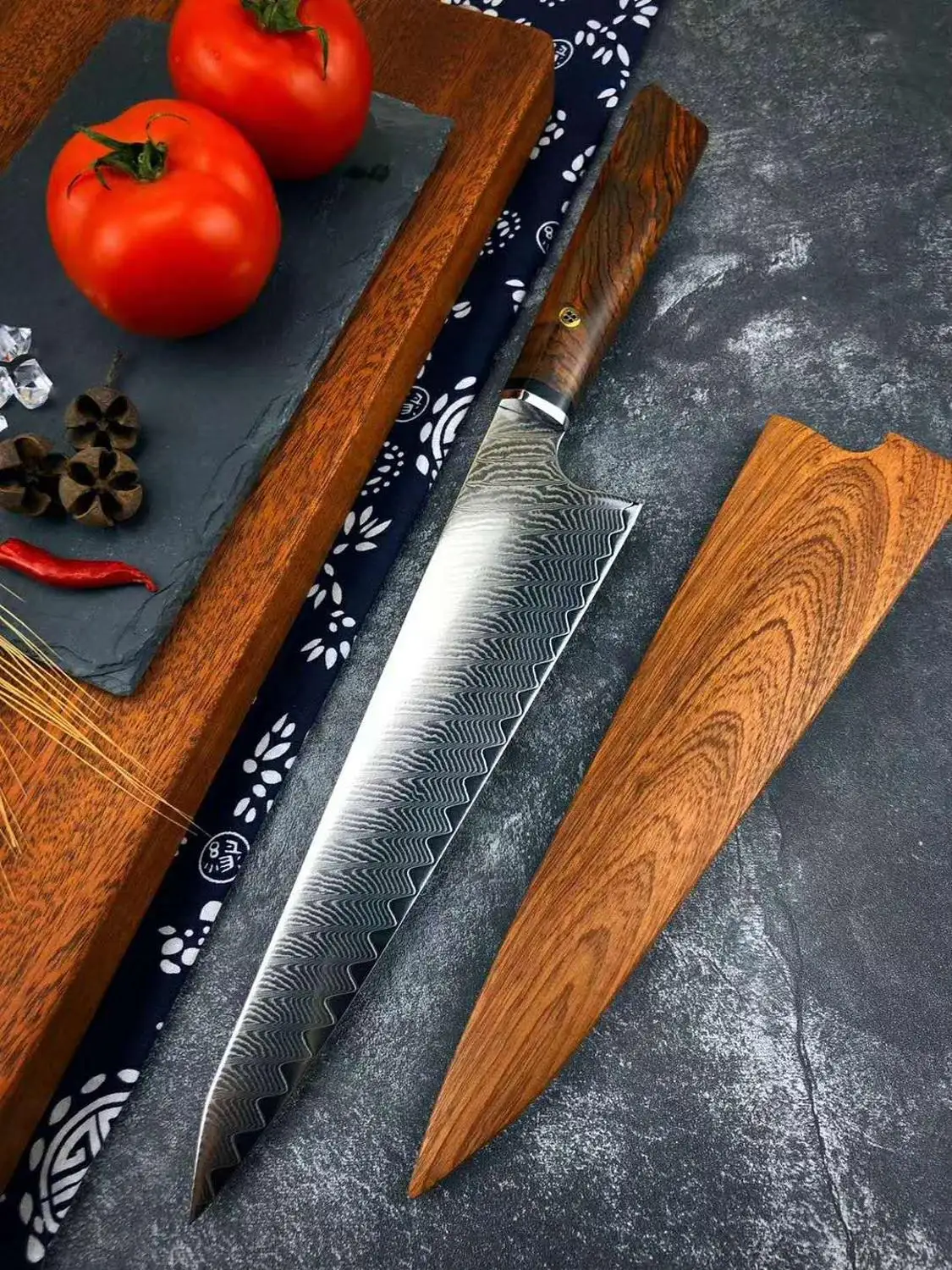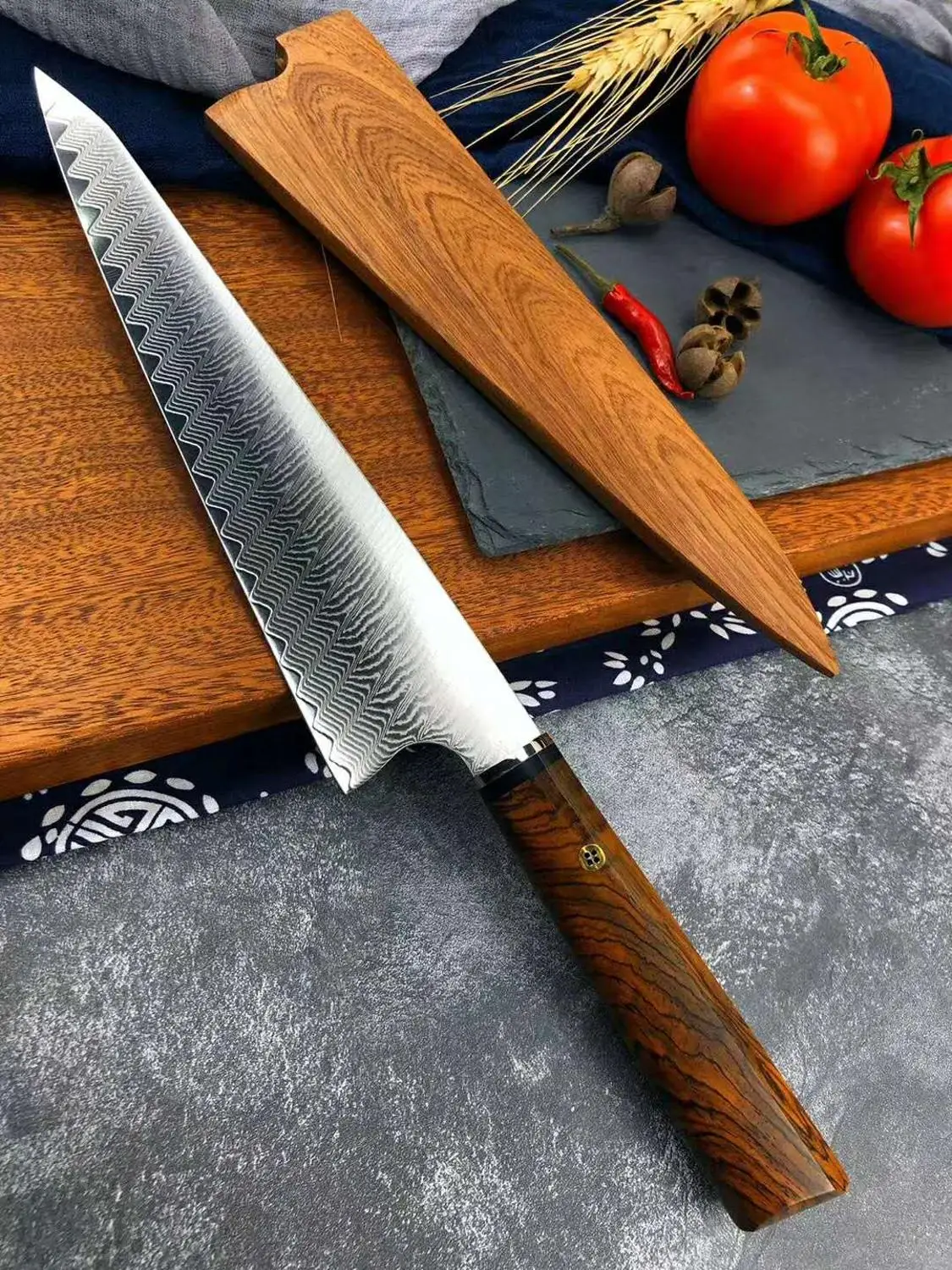 Damascus Séf Kés 8 Hüvelykes Profi Otthoni Étterem Konyhai Húskés 67 Rétegű Pakka Fa Fogantyúval