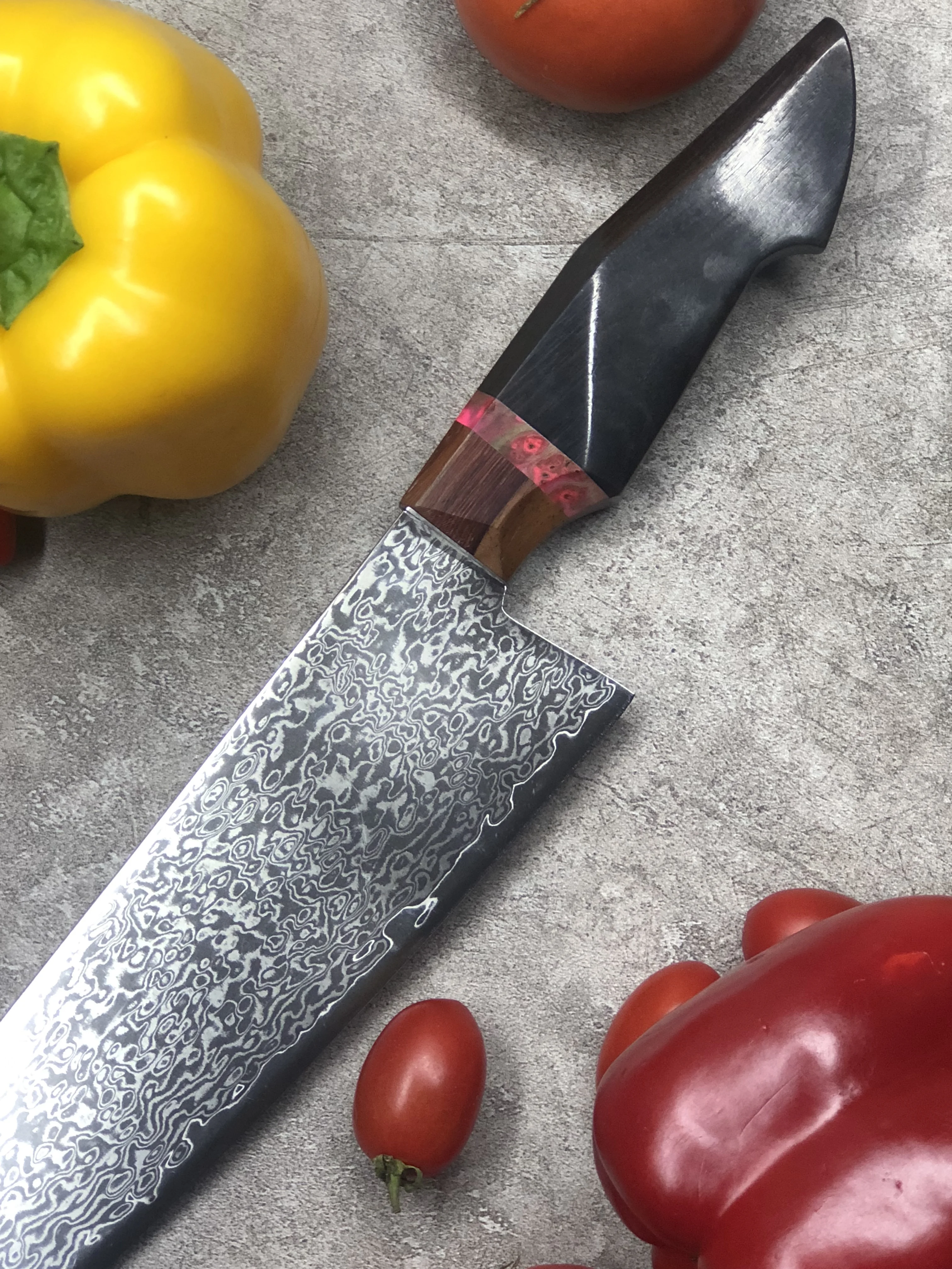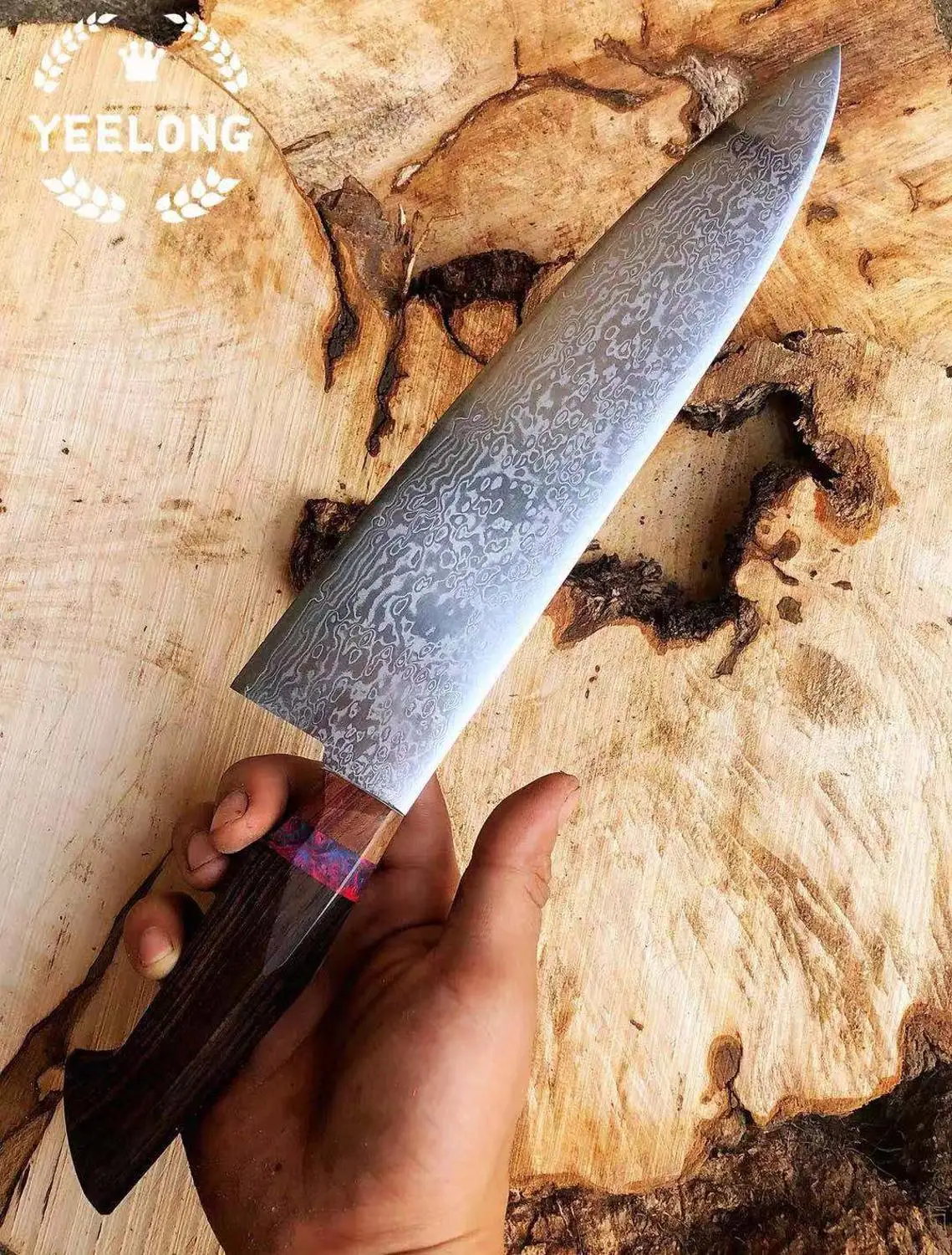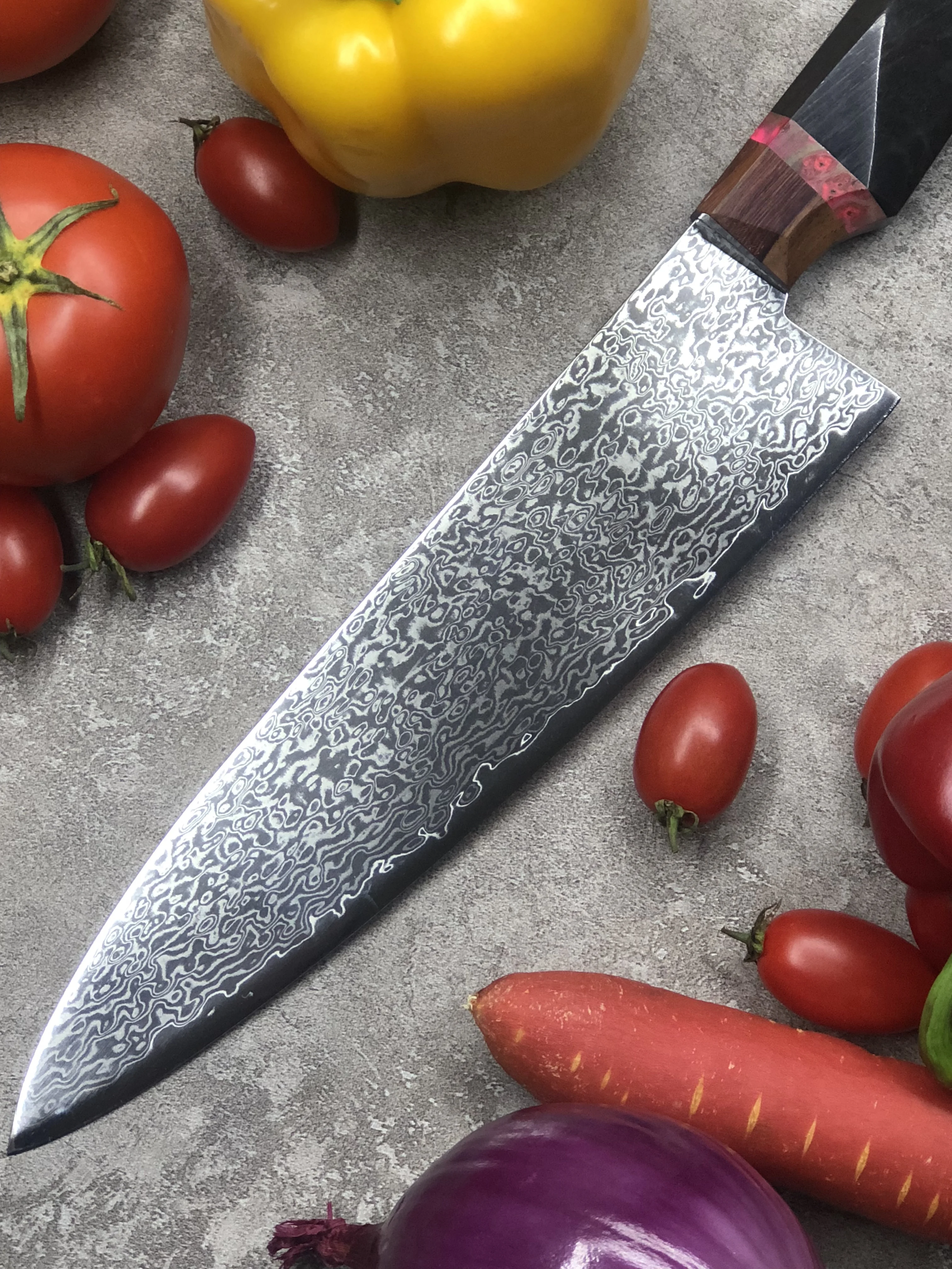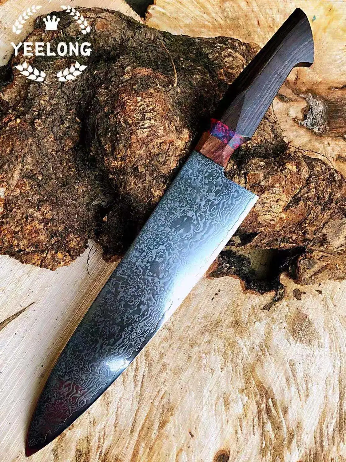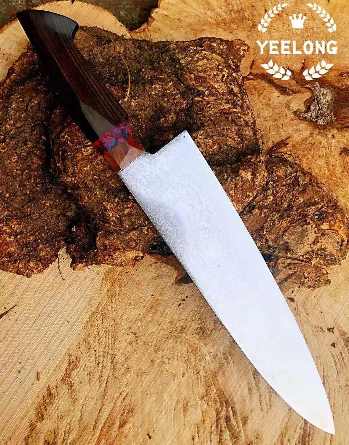 Damascus Séf Kés Japán Gyuto Konyhahús Cleaver Főző Eszköz Vg10 Core Rozsdamentes Acél Stabilizált Fa Fogantyúval