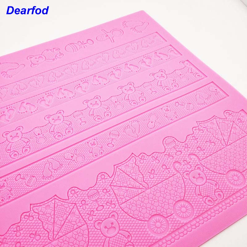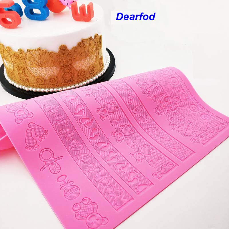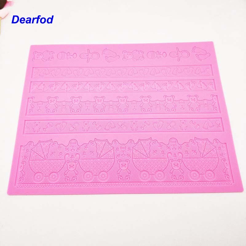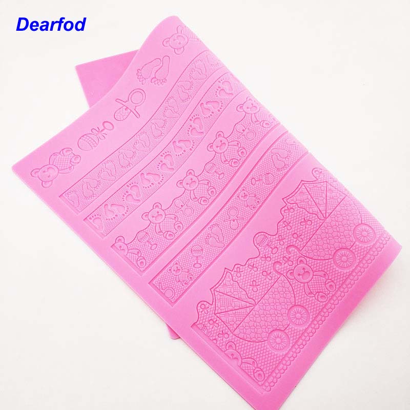 db002 Szilikon Penész Nagy Méretű Babakocsi Medve Baba Lábnyom Csipke Cukor Kézműves Torta Szélső Dekorációs Szerszám