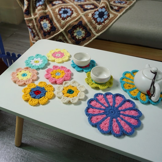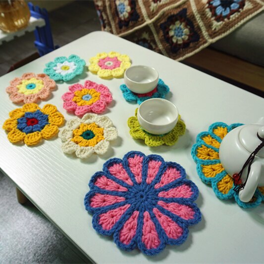 Dekoráció Horgolt Doilies Kézzel Készített Horgolt Kupa Pad Multicolor Virágok Alátétek Kerek Asztali Szőnyegek 8 Cm Gyapjú Ruha Javítás 10 db