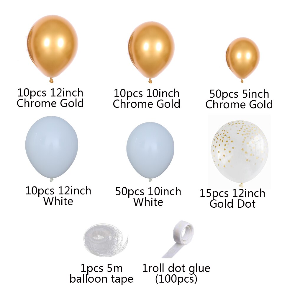 Deursticker 147Db Fehér Arany Léggömb Garland Íj Készlet Pöttyös Króm Metál Latex Ballon Esküvő Születésnapi Party Dekoráció Baba Zuhany Globo