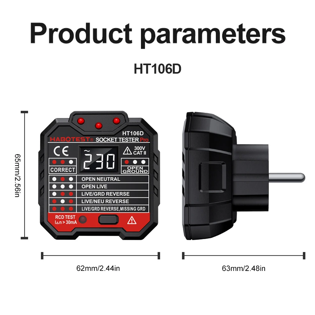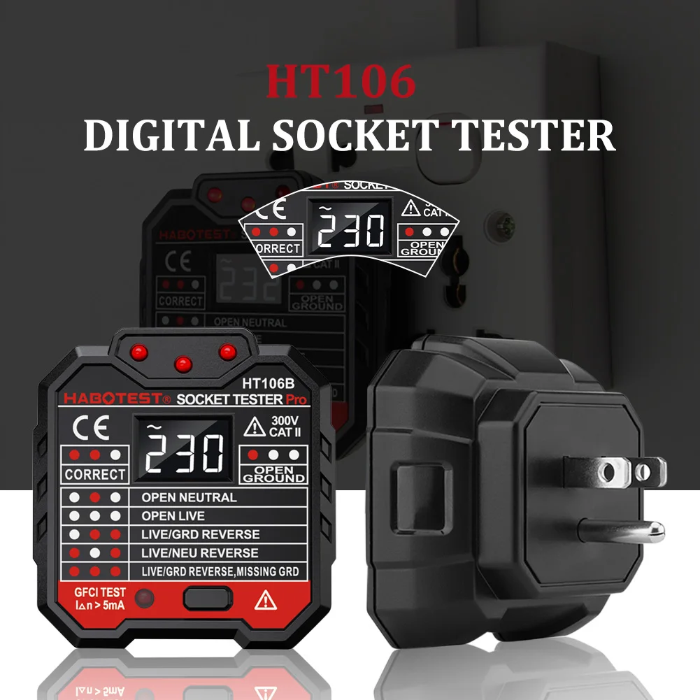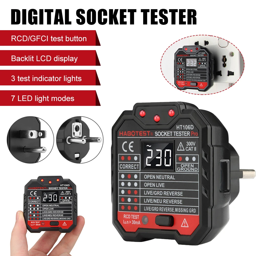 Digitális Aljzat Tesztelő Intelligens Feszültségdetektor Rcd Gfci Ncv Teszt Nagy Lcd Kijelző Föld Nulla Vonalú Polaritás Fázis Ellenőrzése