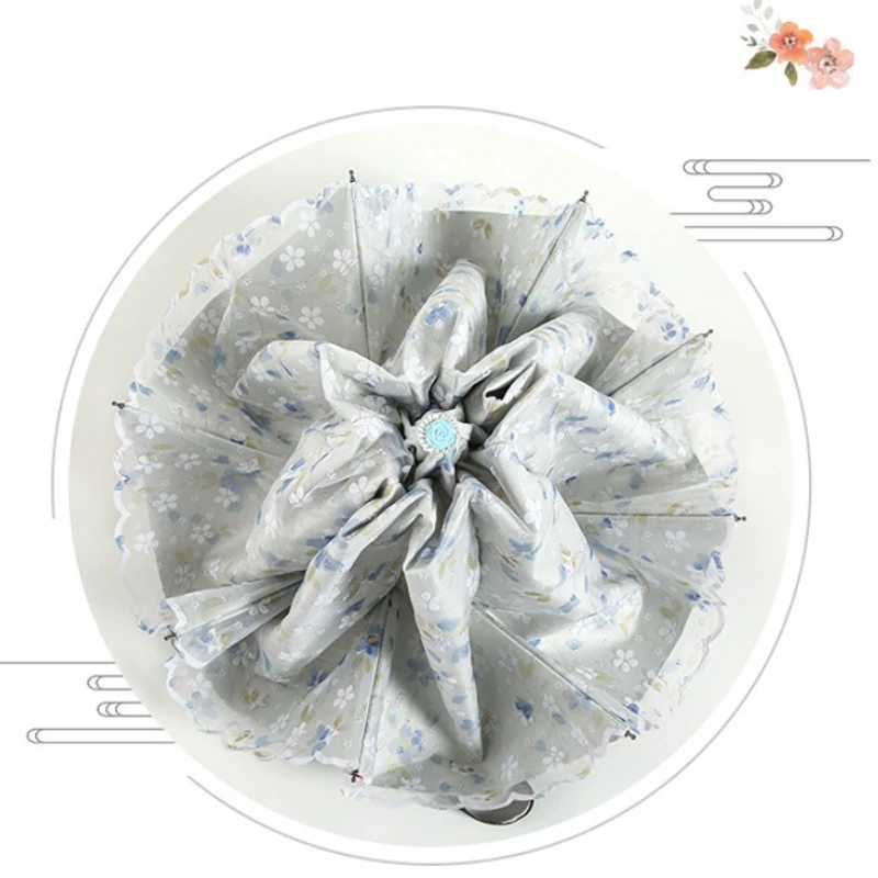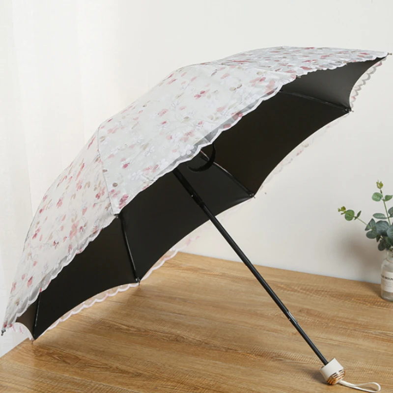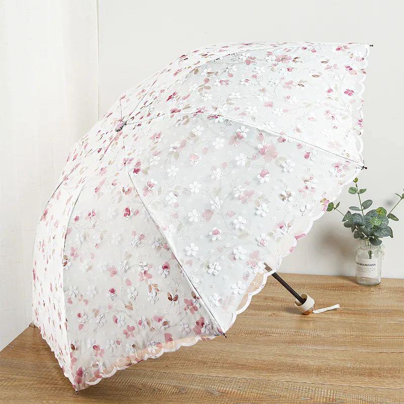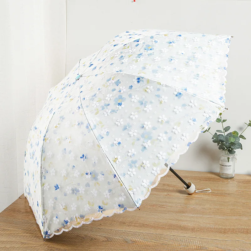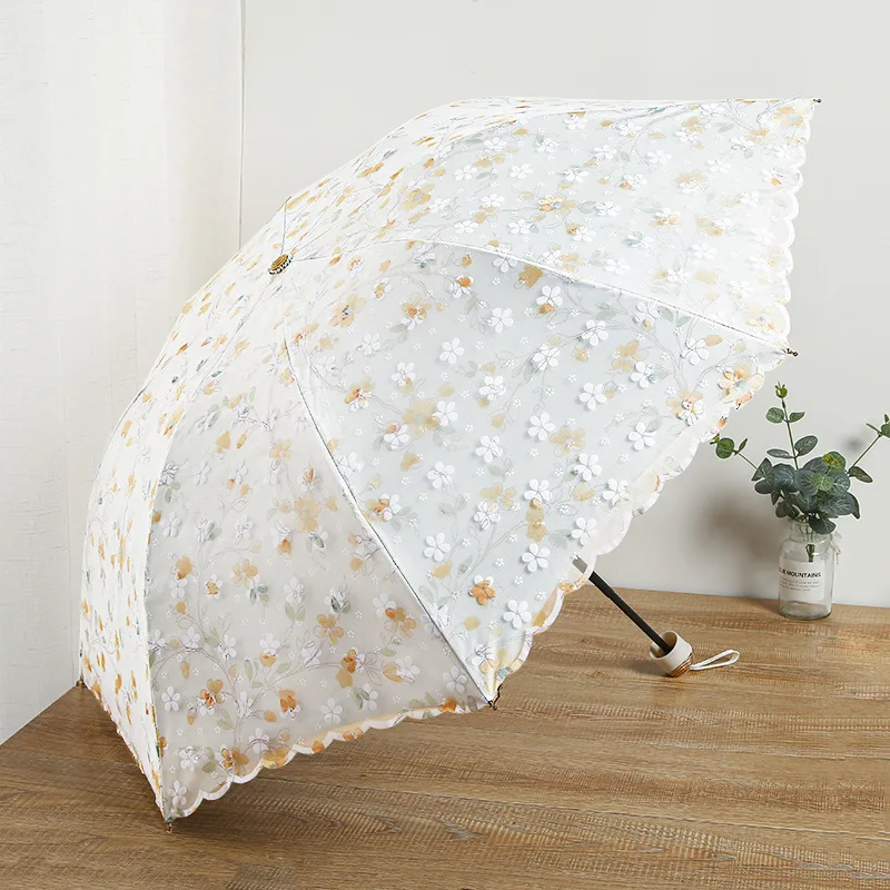 Divat Kettős Rétegű Csipke Virághímzés Összecsukható Esernyő Nyári Kültéri Mini Fényvédő Uv Védelem Napsütéses