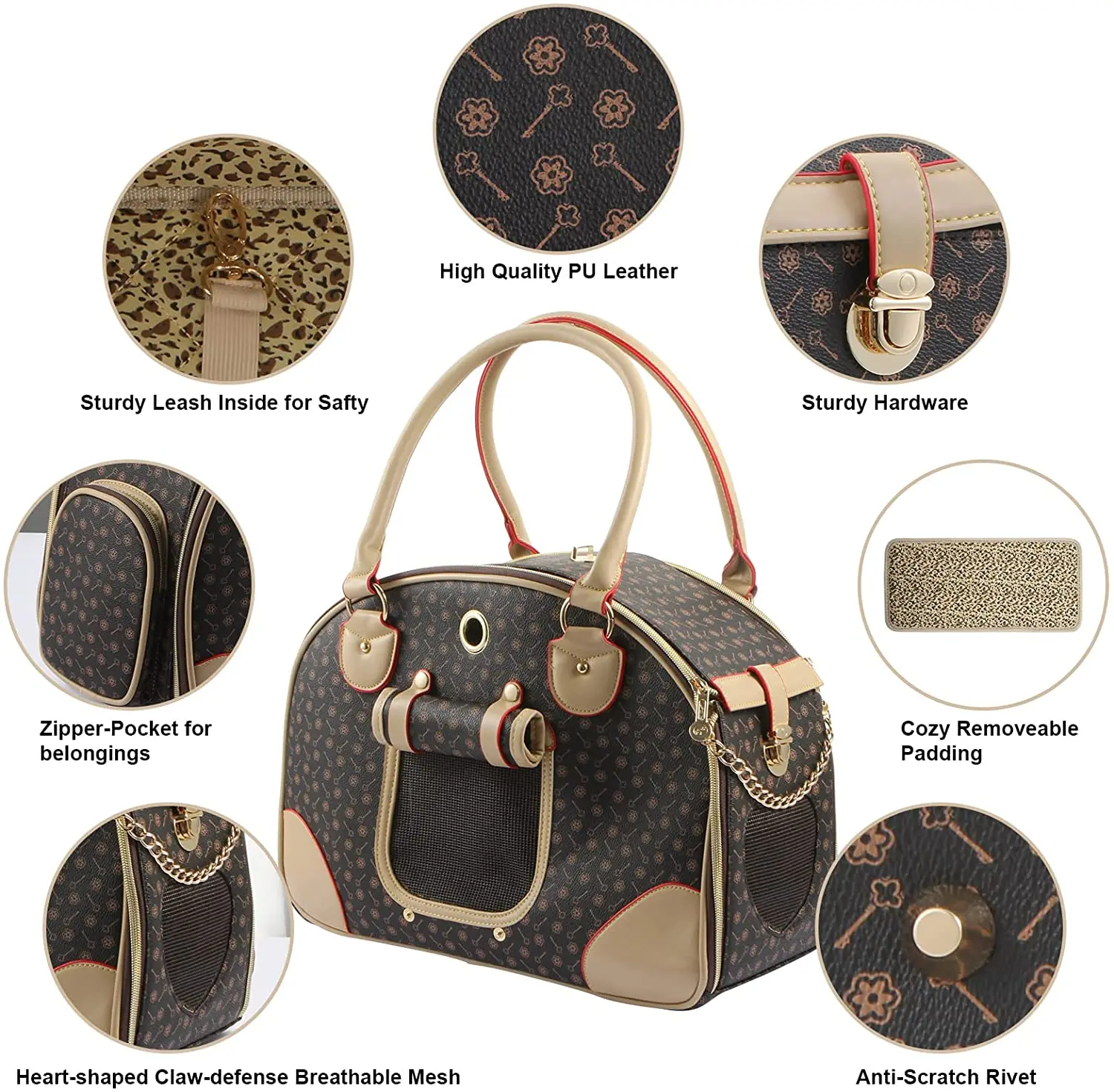 Divathordozó Pu Bőr Kutya Kézitáska Kutya Pénztárca Macska Táska Pet Cat Kutya Túrás Táska, Barna, Nagy 42*29*18 Cm
