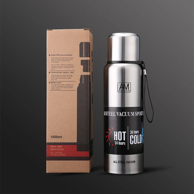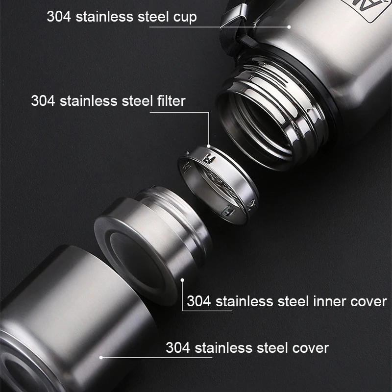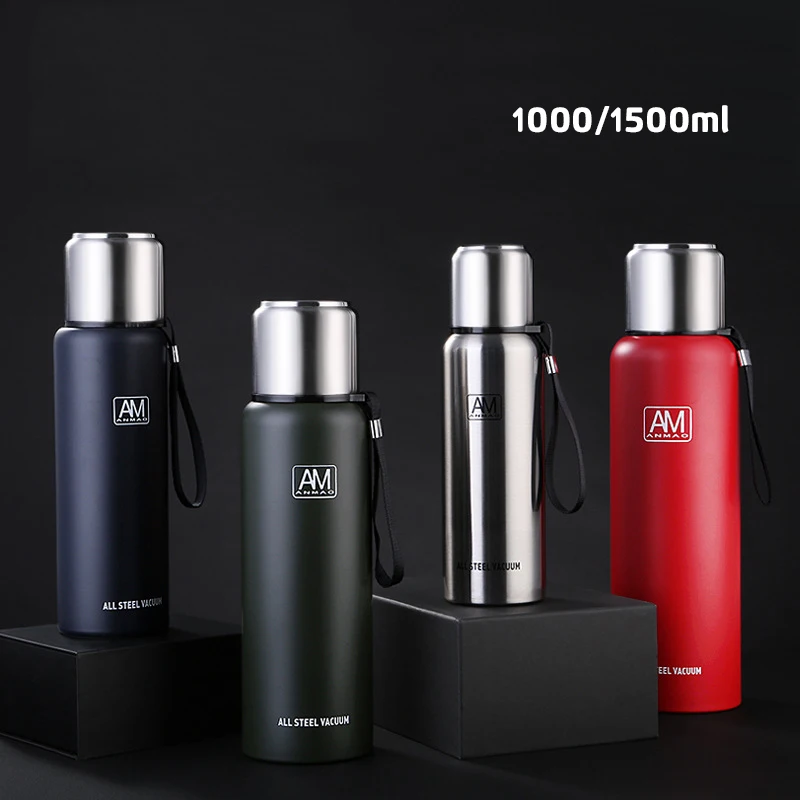 Double Wall 304 Rozsdamentes Acél Termos Víz Palack Vákuum Flombik Kávé Csésze Hordozható Sport Vákuum Termos 1000/1500Ml