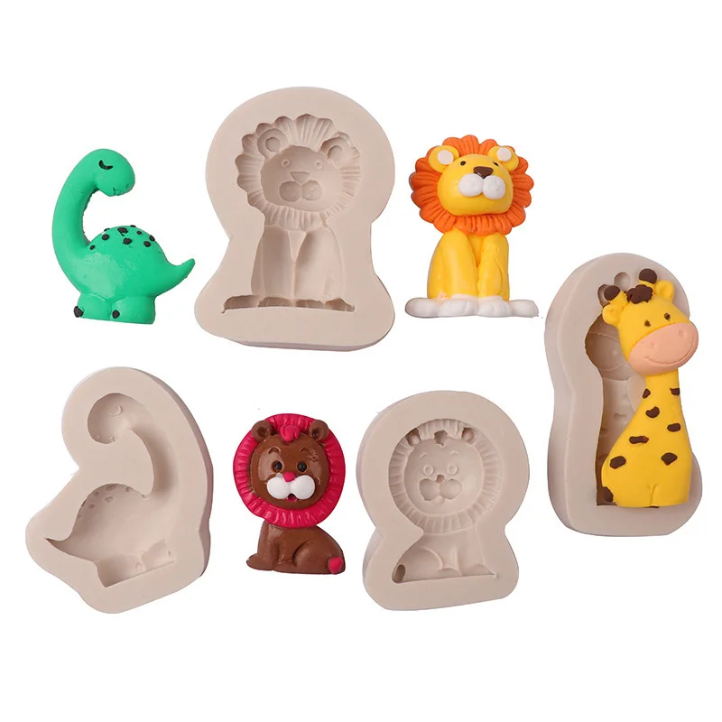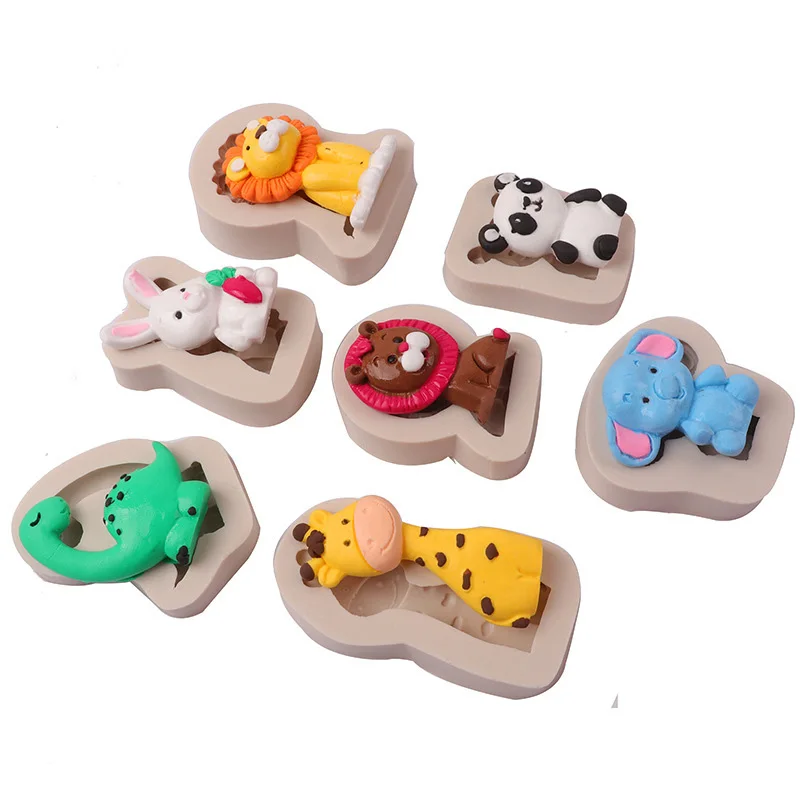 Dzsungel Szafari Állati Szilikon Fondant Penész Medve Oroszlán Zsiráf Nyúl Panda Torta Díszítő A Birhtday Buli Bébi Zuhanyhoz