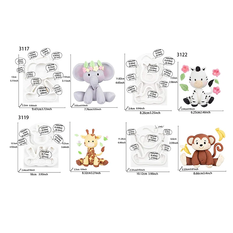 Dzsungel Téma Állati Fondant Szilikon Penész Elefánt Cukrász Születésnapi Torta Dekorációs Eszközök Zsiráf Majom Zebra Cupcake Topper