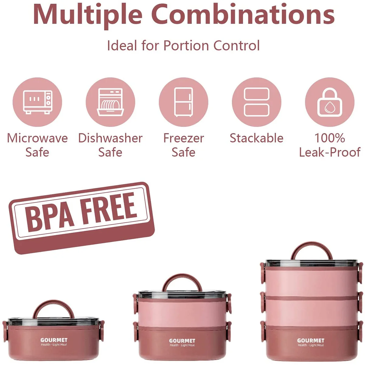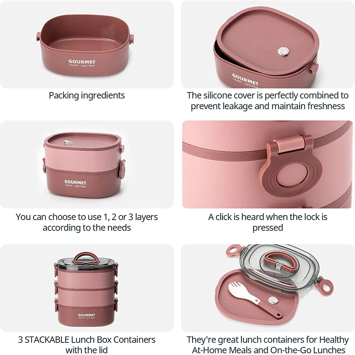 Ebéddoboz 2000 Ml 3-Tier Egymásra Rakható Bento Tok Lezárt Szivárgásmentes Étkezési Doboz Mikrohullámú Biztonságos Hordozható Hallgatók Élelmiszer-Tartály