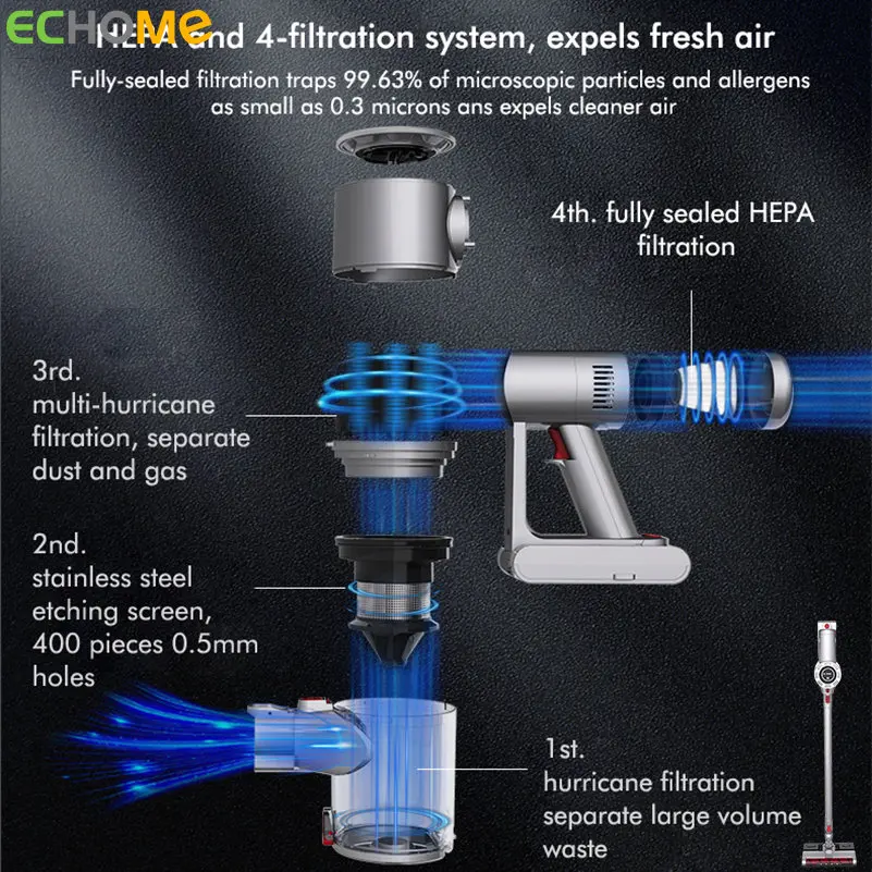 Echome V15 Kézi Porszívó 26Kpa 300W Power Housels Vezeték Nélküli Elektromos Néma Seprőgép Mopping Gép Új