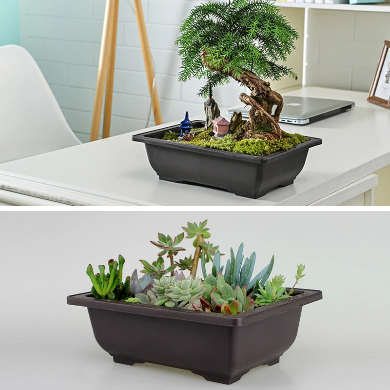 Edző Edények Virágcserepek Utánzás Zamatos Növények Műanyag Bonsai Kültéri Kerti Táj Cserepes Négyzet Alakú Tálcák