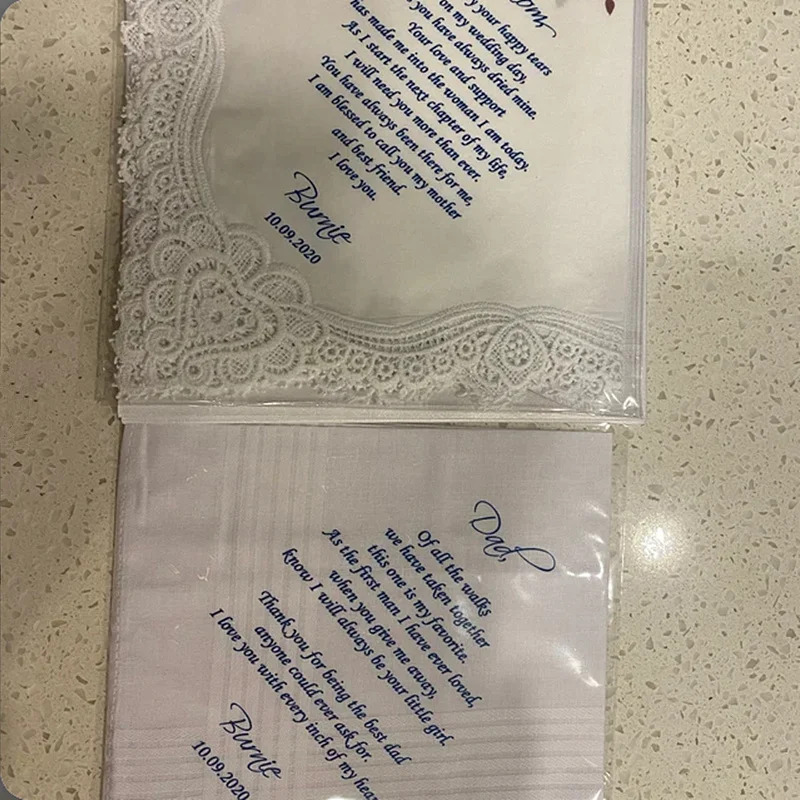 Egyéni Esküvői Hankies, Személyre Szabott Zsebkendő Ajándék A Szülőknek, Az Anyának És Menyasszonyi Ajándéknak, Ajándékkészletnek, Szerkeszthetőségnek