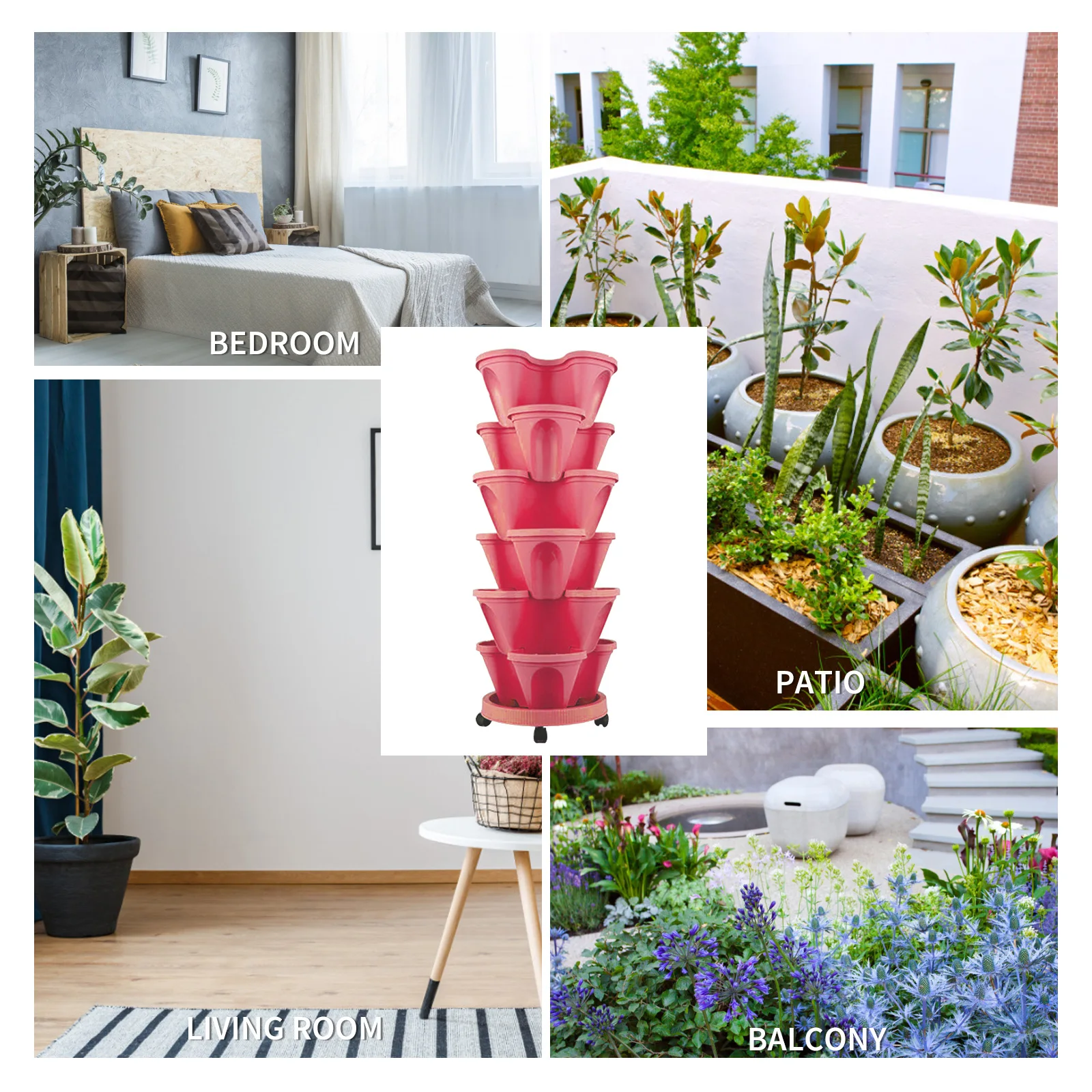 Egymásra Rakható Ültetvényes Többrétegű Virágcserép-Torony Függőleges Mozgatható Virágcserepény Zöldség Eper Kerti Terasz Dekorációhoz