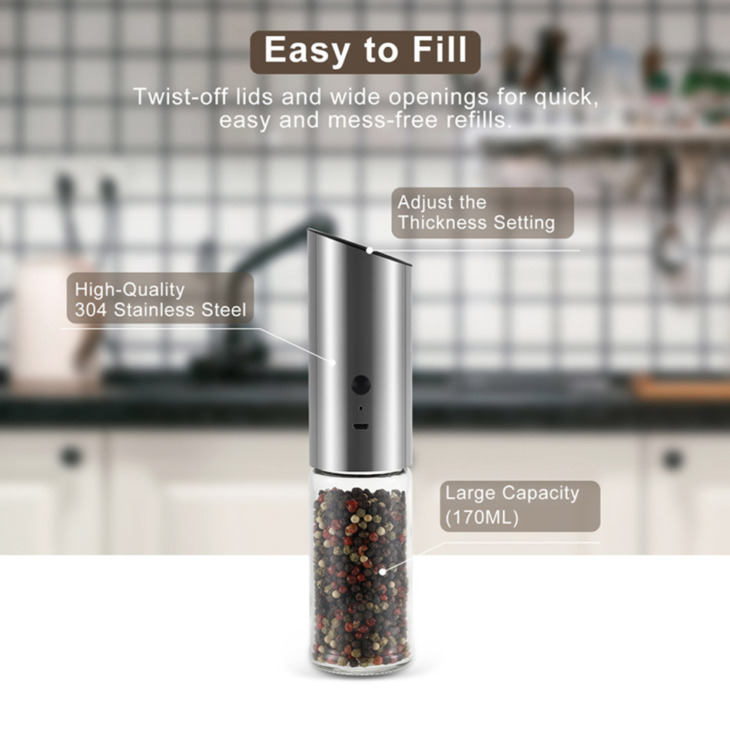 Elektromos Fűszercsiszoló Só És Bors Finom Őrlés 170 Ml Auto Sprinkle Fűszer Usb Újratölthető 1200Mah Akkumulátor Bbq Kempinghez