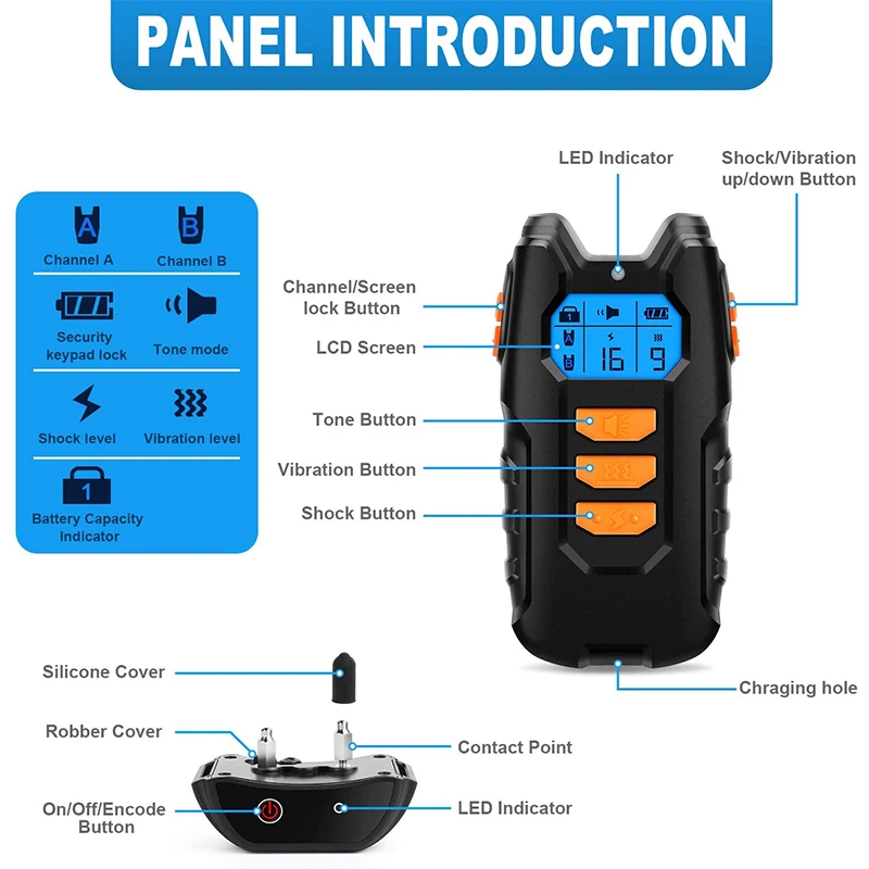 Elektromos Kutya Edzés Gallér 1000 Láb Hosszú Távirányító Karkos Gallér Kutyák Számára Vibráció Hang Sokk Újratölthető Vízálló