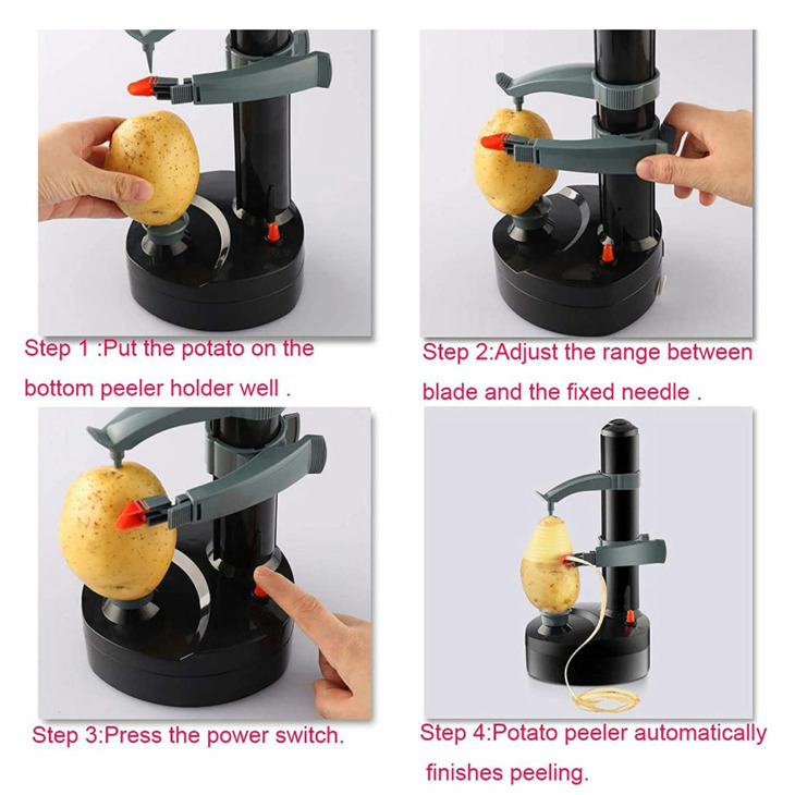 Elektromos Spirális Alma -Hámozó Vágó Szeletelő Gyümölcs Burgonya Hámozás Automatikus Akkumulátorral Működtetett Gép Töltő Eu Dugóval