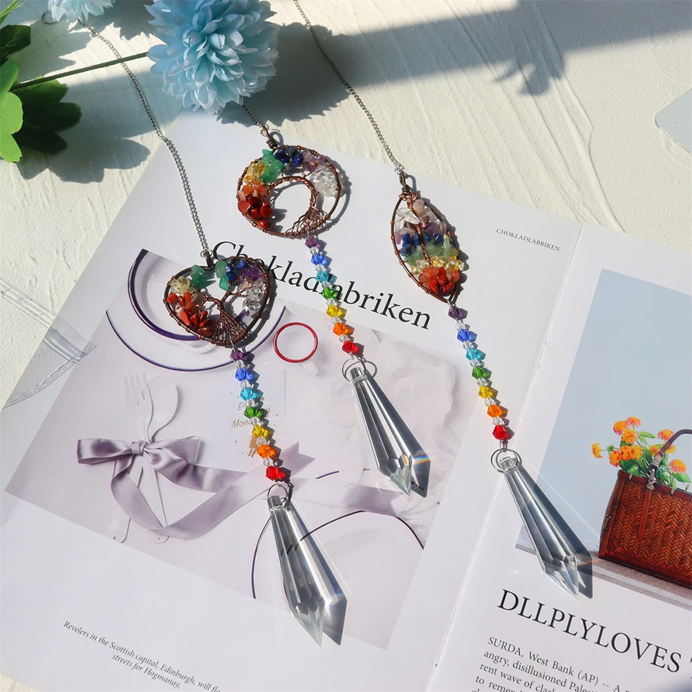 Élet Fa Kristály Windchimes Napsütéses Ablak Természetes Kő Kézműves Kültéri Kert Függő Medál Otthon