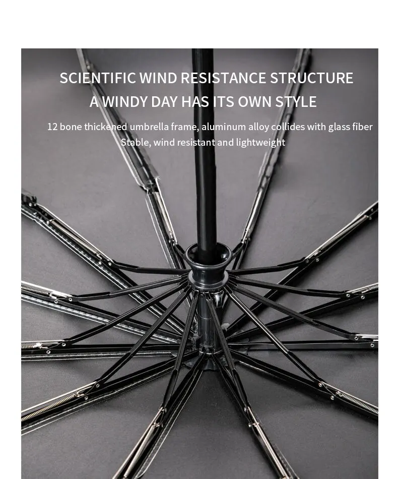 Erős Szélálló 12K Automatikus Esernyő Eső Nők Fogantyú Férfiak Vállalkozás Kültéri Utazási
